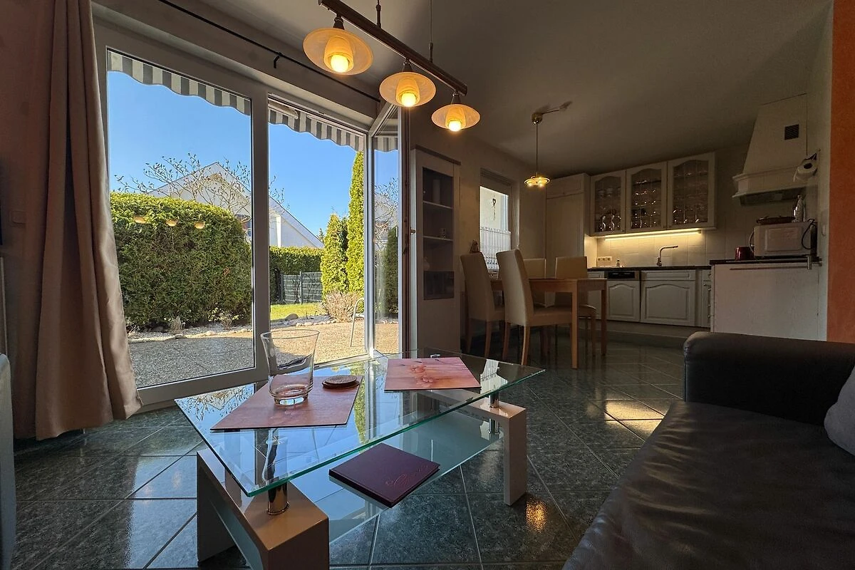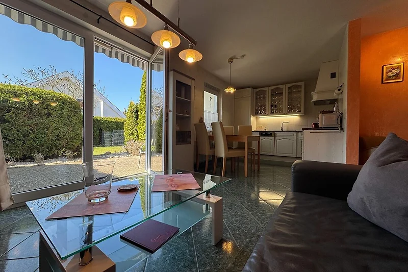 Gemütlich eingerichtete 3-Raum-Ferienwohnung im Erdgeschoss mit offenem Wohnbereich und Küche, Duschbad und Gartenterrasse direkt am Haus für Rollstuhl- und Rollatorfahrer geeignet. Ein (1) erzogener Hund (max. 40cm Schulterhöhe) ist willkommen. Viele Auslaufwege entlang des Ostseeküstenwanderwegs starten direkt ab Unterkunft in der Wohnsiedlung zwischen Stadtkern und Ortsausgang. Perfekt für Ostseeurlaub mit Hund und Kindern. Spielplatz, Fussballplatz, Einkaufsmöglichkeit, Fahrradverleih alles in fussläufiger Nähe.