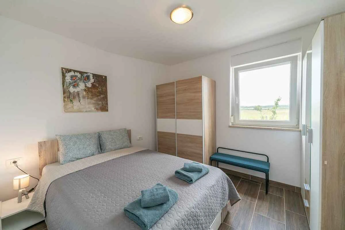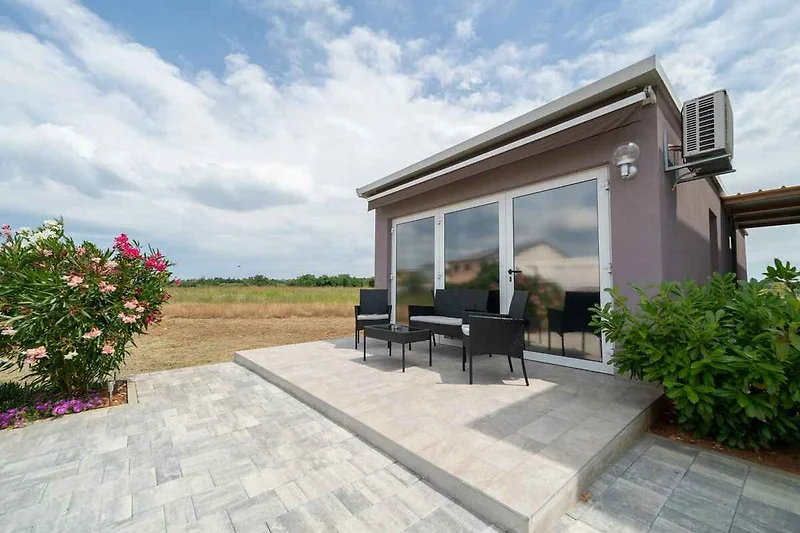 Umag. Die Ferienwohnung befindet sich auf einem Gartengrundstück mit Blumen. Parkplatz auf dem Grundstück.