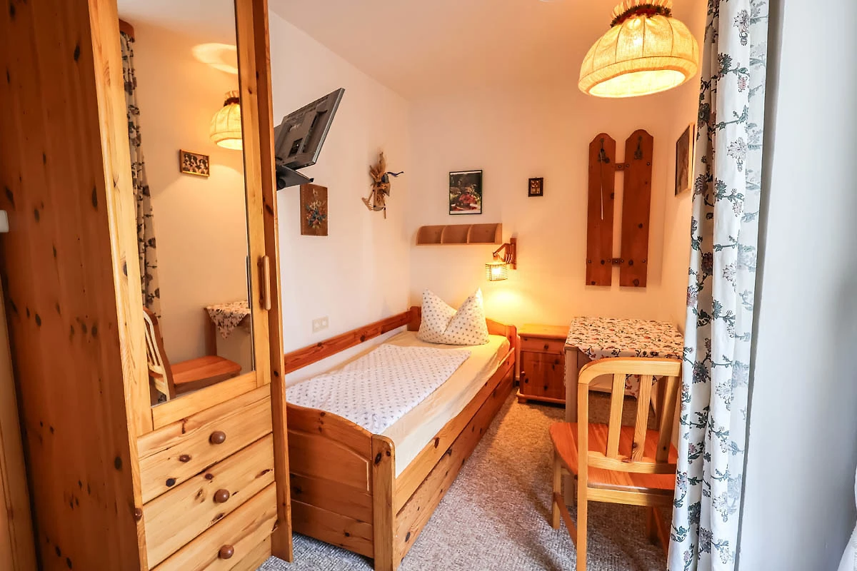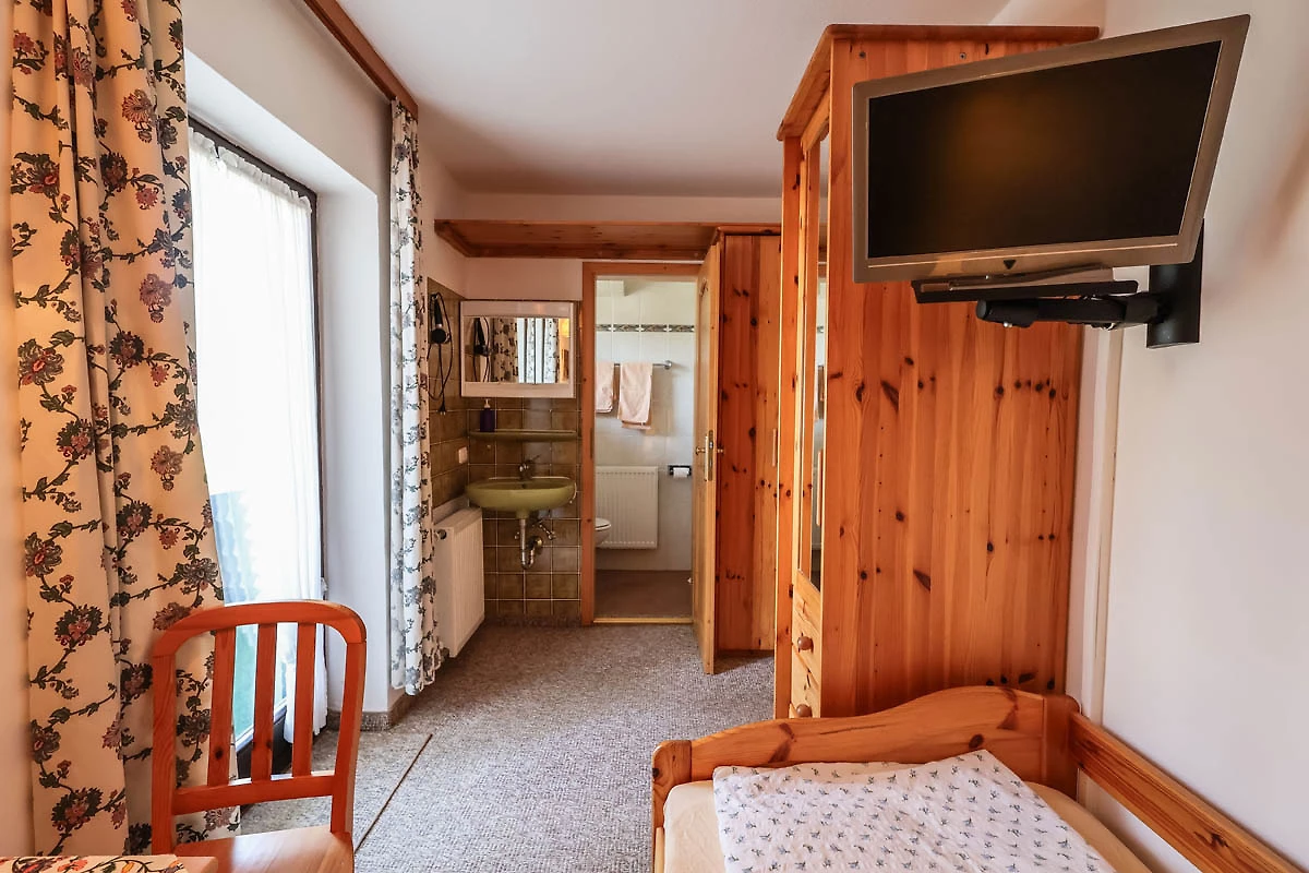 1 Einzelbettzimmer mit D/WC, Fernseher, Nord-Ost-Balkon.