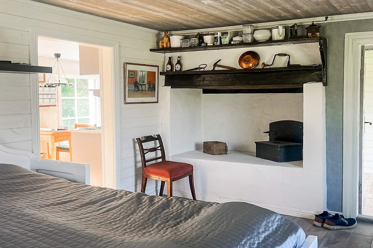 Wenn Sie Schwedens wunderschöne Wald- und Seenlandschaft erleben möchten, ist dieses Ferienhaus genau das Richtige für Sie. Ein wunderschönes altes Gebäude, komplett renoviert, aber sorgfältig, um seinen Charme zu bewahren. Mit viel Platz für zwei Personen. Die Decken sind aufgrund des ursprünglichen Alters des Gebäudes niedrig. Ein großes Schlafzimmer mit einem schönen Doppelbett, eine Küche, genau richtig für zwei Personen. Sowie ein großes Wohnzimmer mit Sofa und Esszimmermöbeln. Vom Wohnzimmer aus gelangen Sie auf die überdachte Terrasse und die Rückseite. Das große Badezimmer verfügt über eine Dusche und ein WC. Nur 300 m entfernt, über einen gemütlichen Weg durch den Wald, befindet sich ein See, der nur von den drei umliegenden Häusern genutzt wird. Hier können Sie angeln und je nach Verfügbarkeit auch ein Boot ausleihen. (Boot bei Ankunft buchen).
