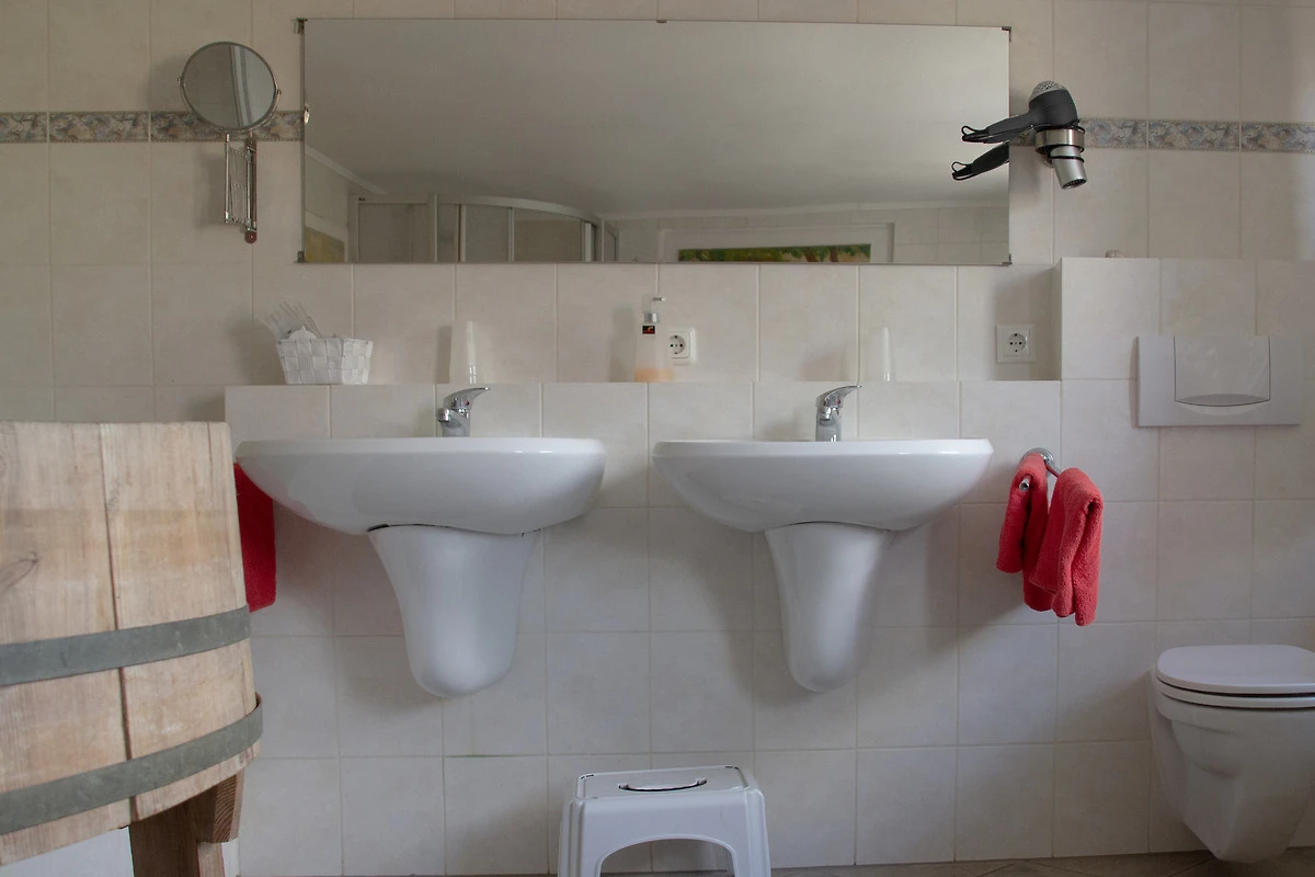 Es stehen 2 Badezimmer mit jeweils Dusche, Waschbecken und Toilette zur Verfügung.