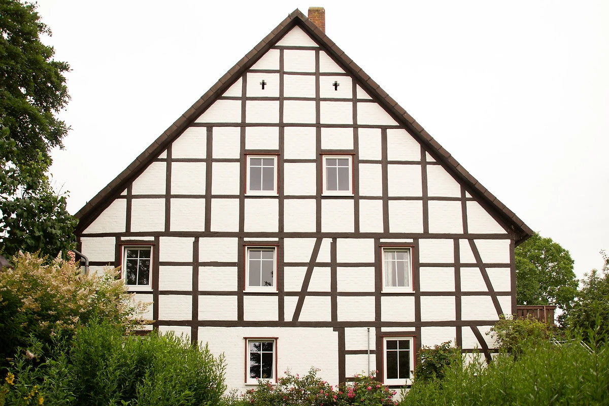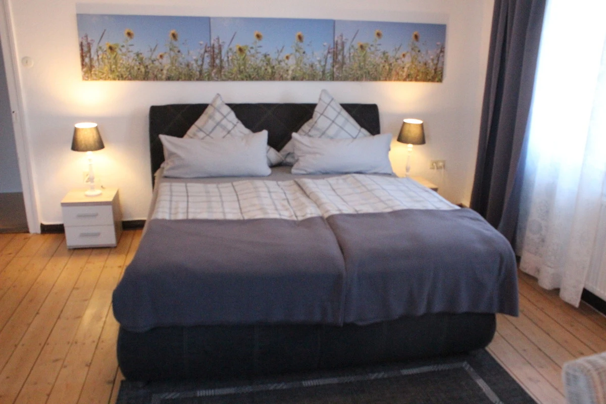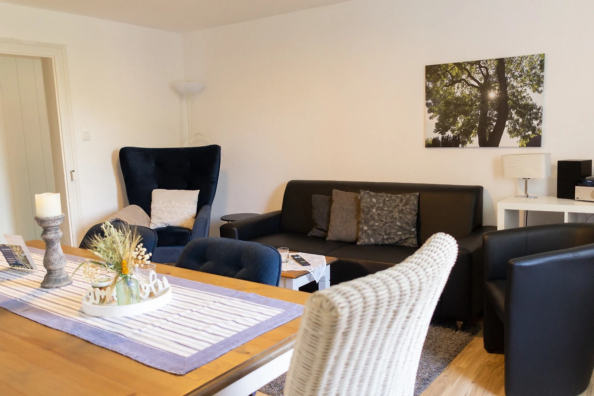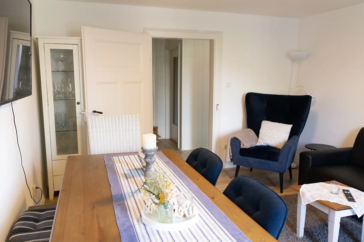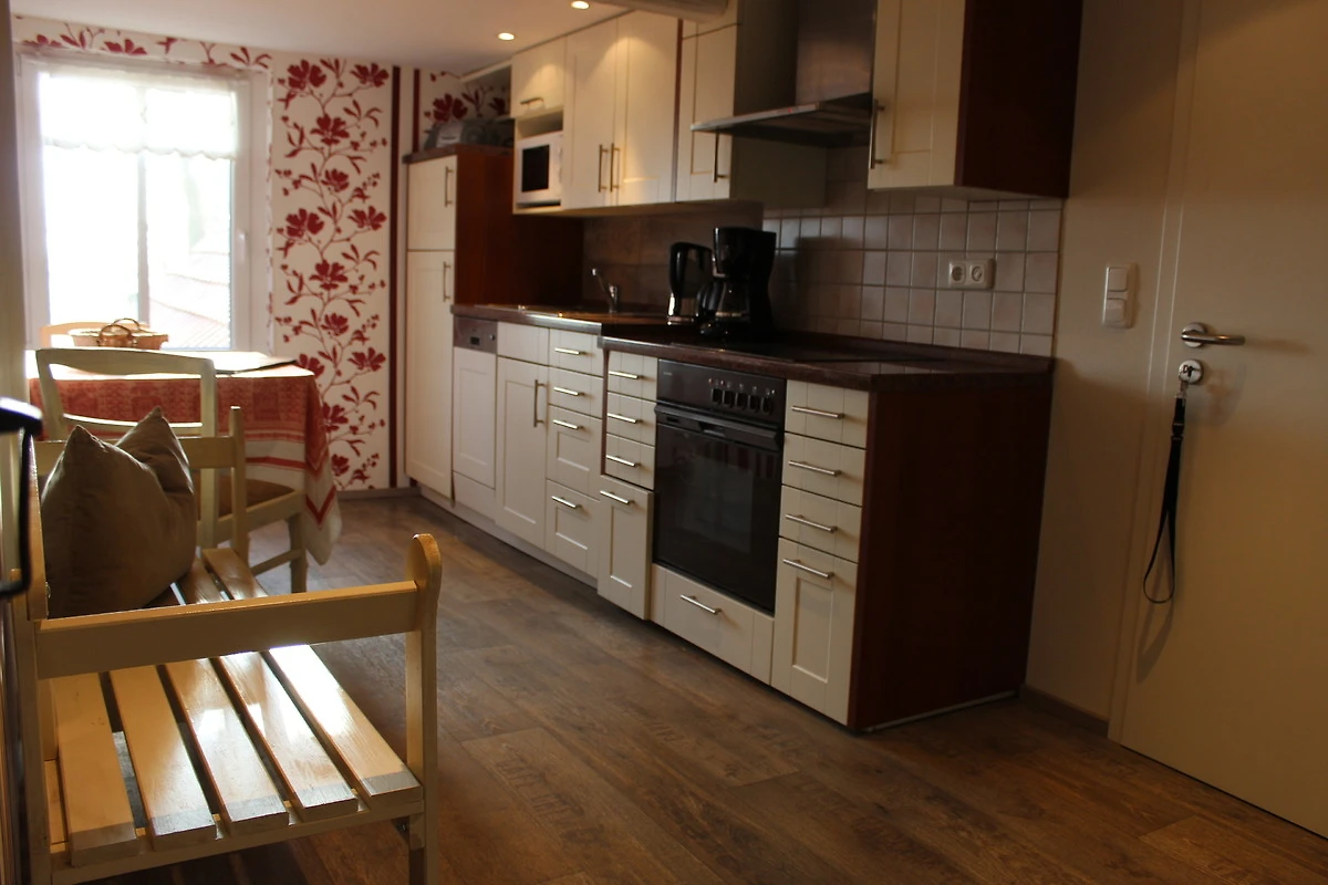 Diese 90 qm grosse Wohnung in der 1. Etage mit Balkon verfügt über ein Wohnzimmer mit Sat-TV, 3 Schlafzimmer, Küche und 2 Badezimmer, W-lan. Der Zugang zur Wohnung erfolgt über unsere schöne Fachwerkdiele.
