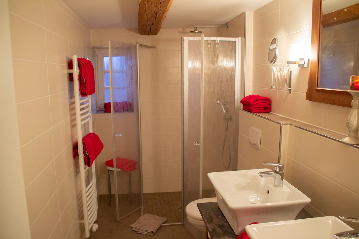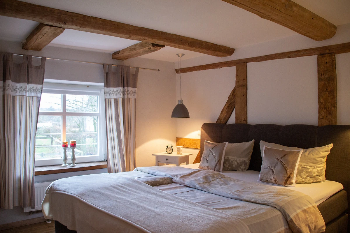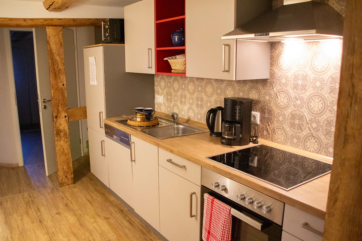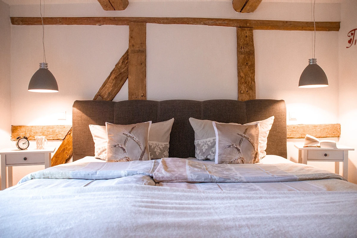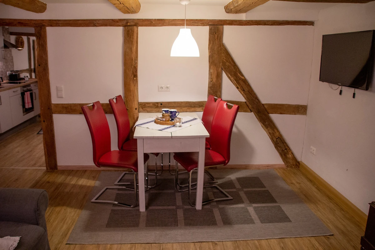Das Besondere an der Wohnung ist, dass das komplette Fachwerk herausgearbeitet wurde und dadurch die Wohnung sehr urig und gemütlich wirkt.