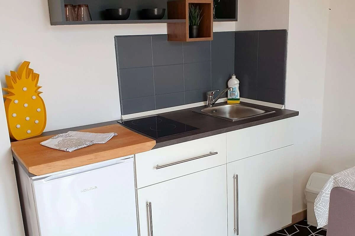 Die Annehmlichkeiten waren beeindruckend für ein Studio, Die Kochnische hatte alles, was wir brauchten, und die kostenlosen Toilettenartikel waren ein schöner Bonus, Der Haartrockner war auch praktisch!