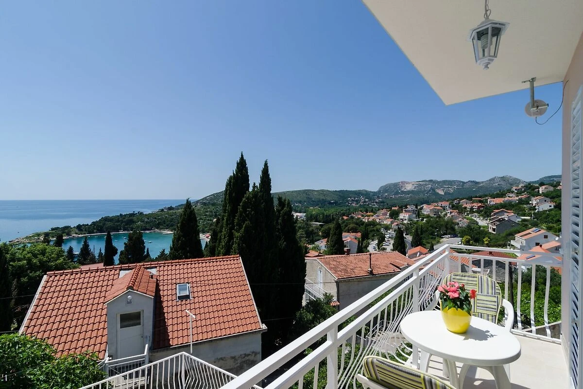 Furnished balcony with a breathtaking view of the Adriatic sea is at guests disposal.