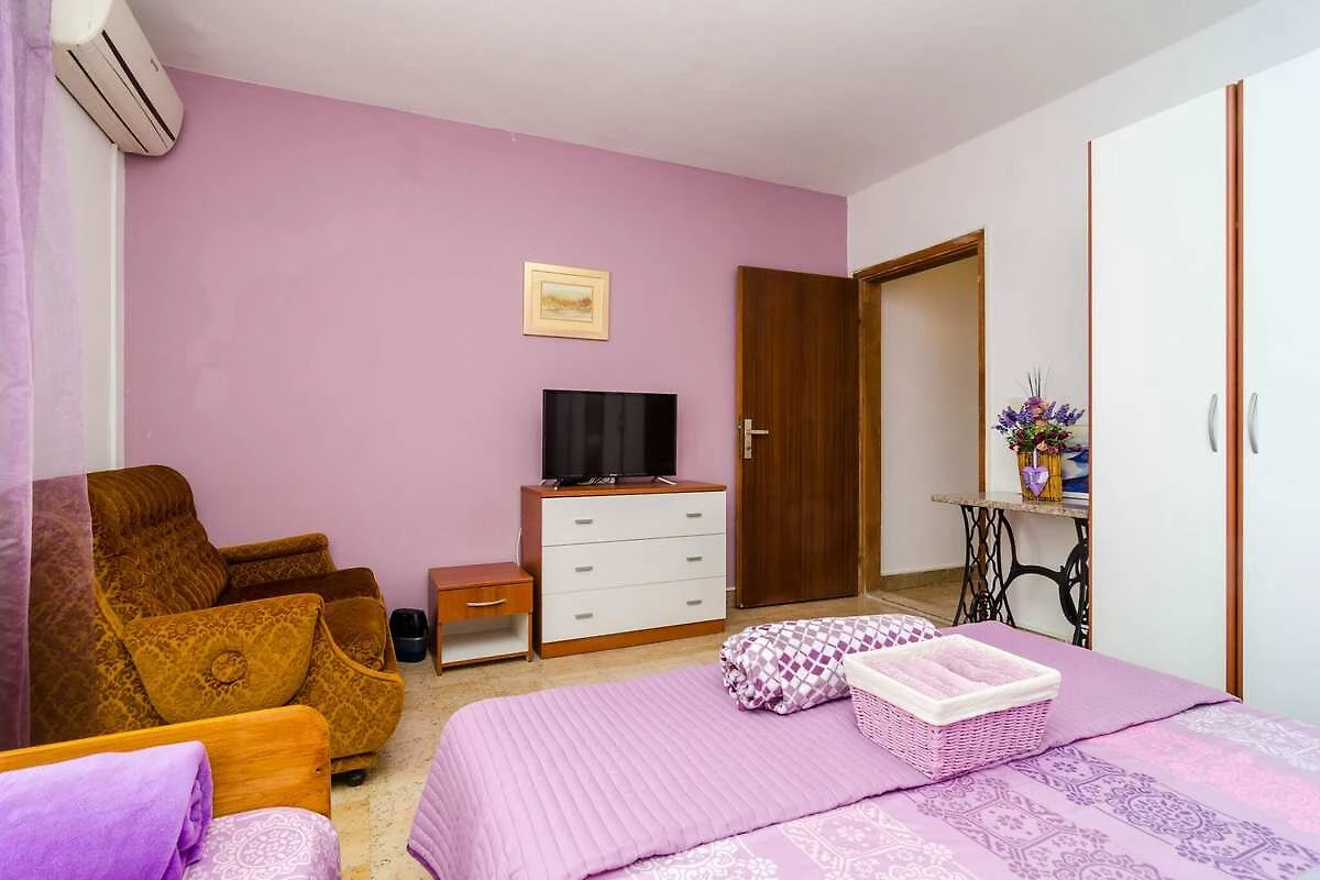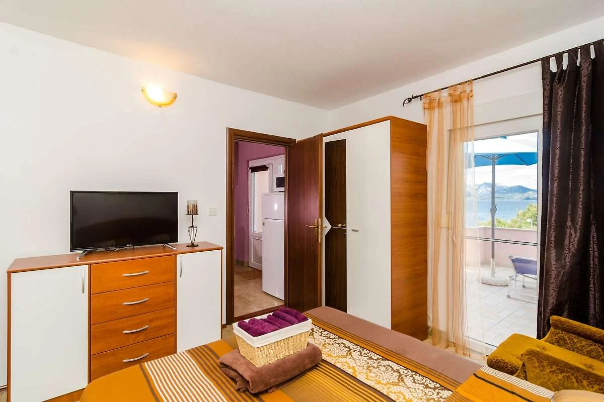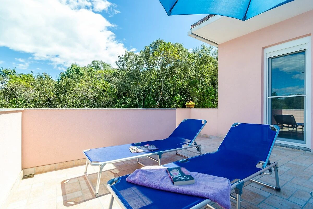 This two bedroom apartment with furnished terrace and the sea view is perfect for a relaxing vacation with family or friends. Apartment is situated on the ground floor. It features WiFi, air-conditioning and TV, fully equipped kitchen with dining area, spacious living room and a private bathroom. Kitchen is equipped with an oven, stove, microwave, refrigerator, toaster, water kettle and a dining area.