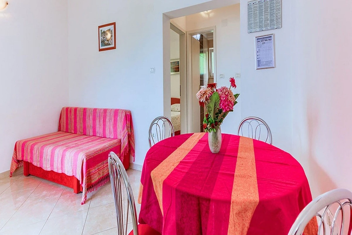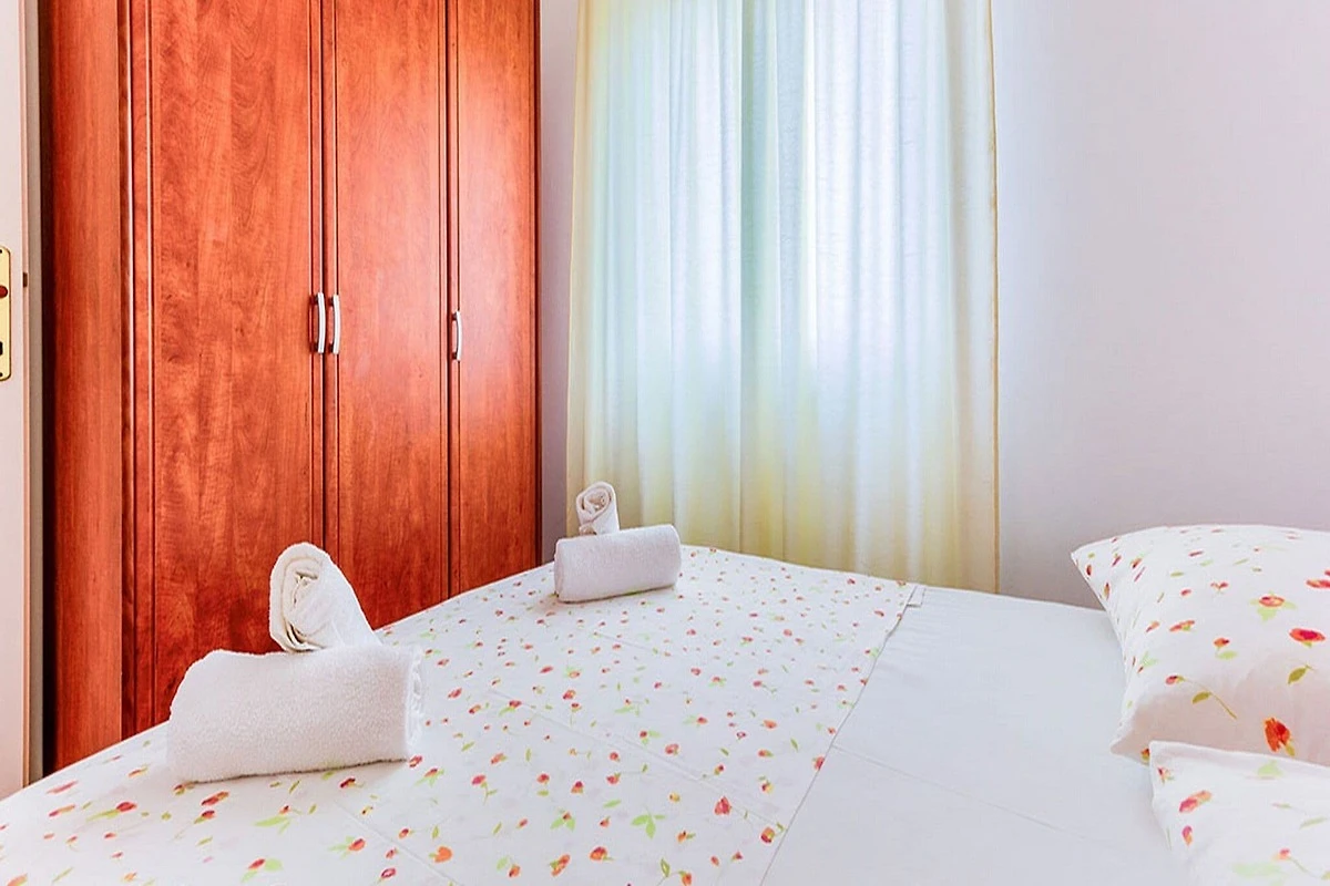 This lovely one bedroom apartment with furnished terrace is perfectly fit for up to two people. It features free WiFi, air conditioning as well as SAT LCD TV. Bedroom is furnished with double bed. Kitchen is equipted with oven, refrigerator and dining area. Private bathroom comes with shower and toilet. The apartment is located on the second floor.