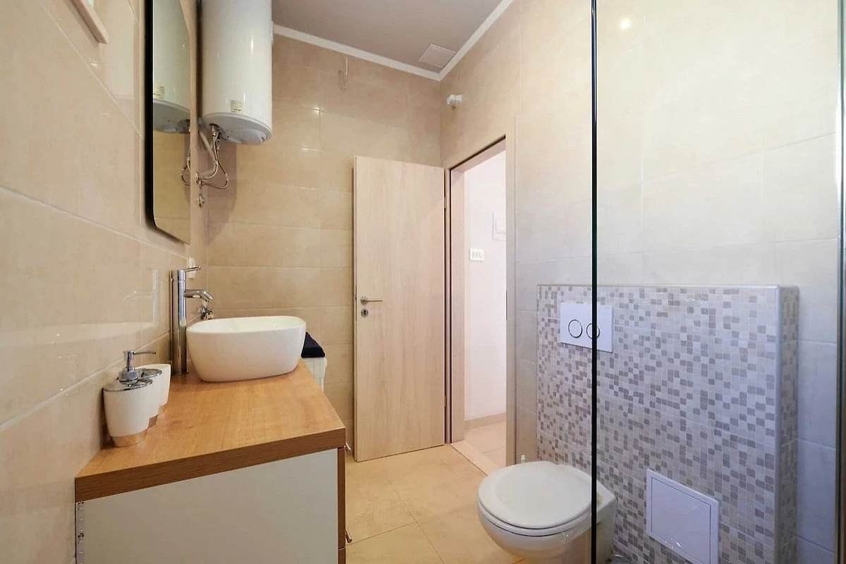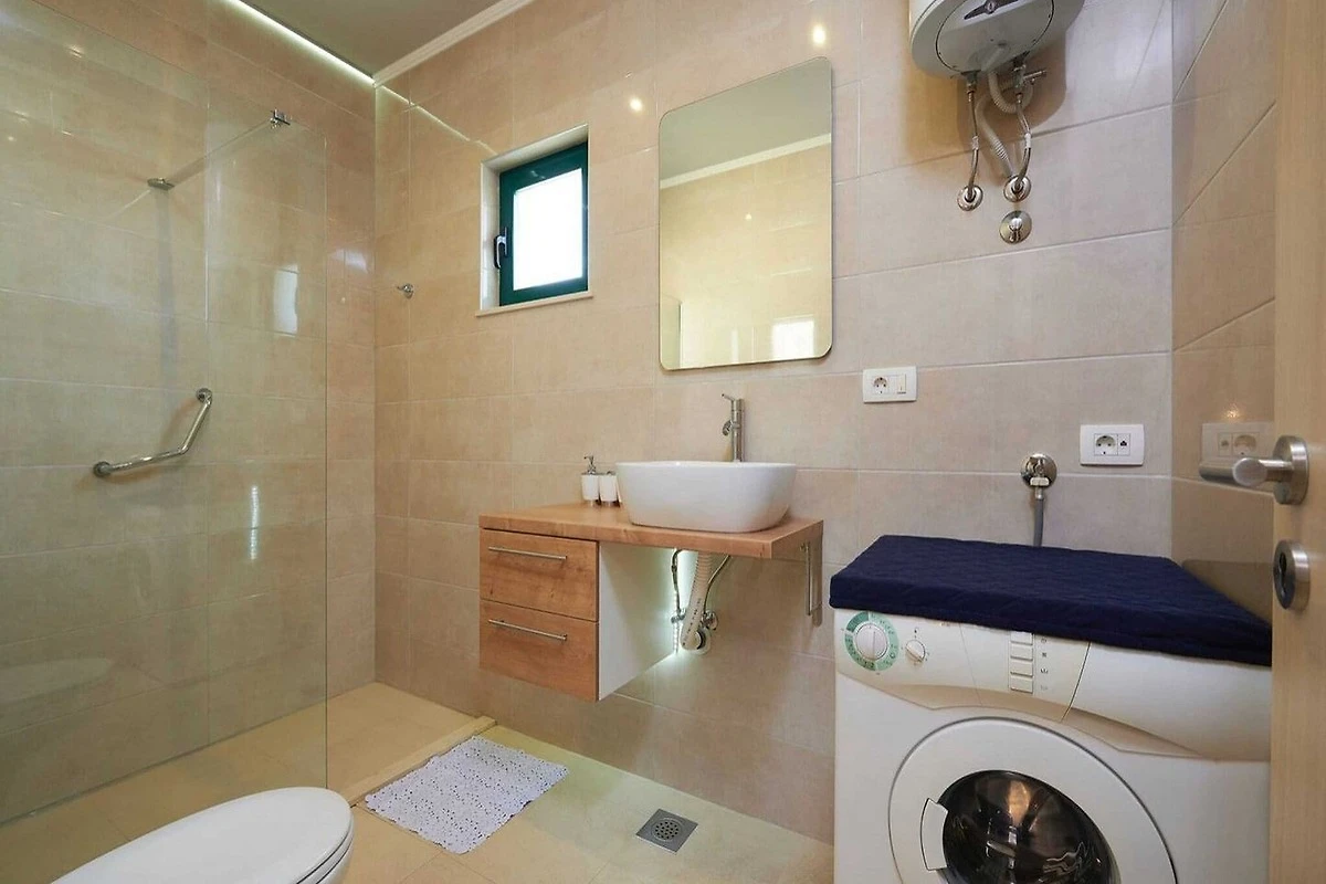 Ein wunderschöner Urlaub mit der Familie. Die Wohnung liegt in einer ruhigen Gegend, der Gastgeber hatte kein Problem damit, mich ein paar Stunden vor der geplanten Zeit einchecken zu lassen, in der Nähe von zwei Stränden, Geschäften und Restaurants, einer geräumigen Terrasse in einer Wohnung mit Sonnenschirm spendet Schatten an heißen Tagen und ein großer Balkon im anderen. Ein großes Plus ist eine Waschmaschine in einem der Apartments, was bei einem längeren Aufenthalt praktisch war. Schöner Parkplatz zwischen den Olivenbäumen.