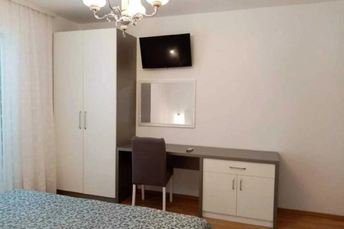 This studio apartment with balcony can accommodate up to three people. It features LCD TV as well as air-conditioning. The kitchenette is equipped with refrigerator, water kettle, stove, trash cans, kitchen utensils and dining area. Private bathroom comes with shower and toilet. Bed linen and towels are at your disposal.