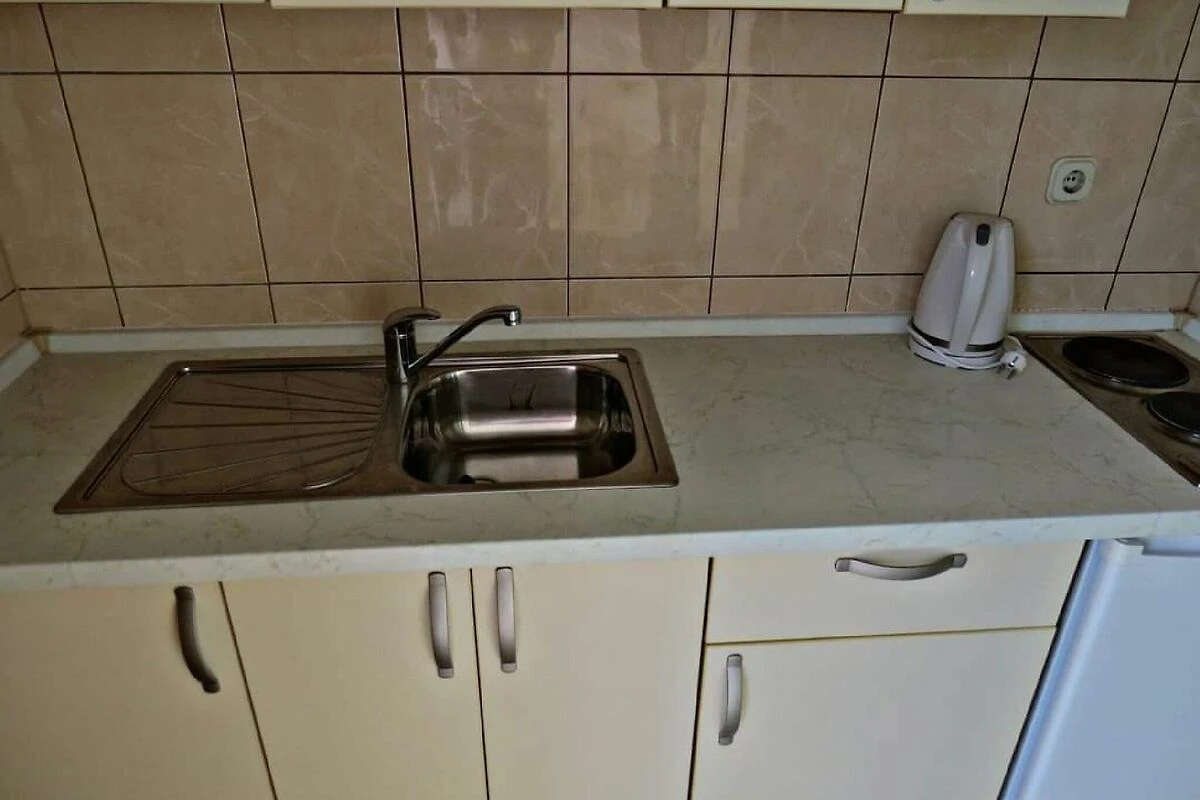 This studio apartment with balcony can accommodate up to two people. It features LCD TV as well as air-conditioning. The kitchenette is equipped with refrigerator, water kettle, stove, trash cans, kitchen utensils and dining area. Private bathroom comes with shower and toilet. Bed linen and towels are at your disposal.