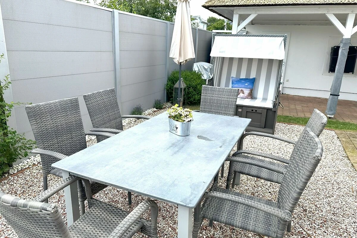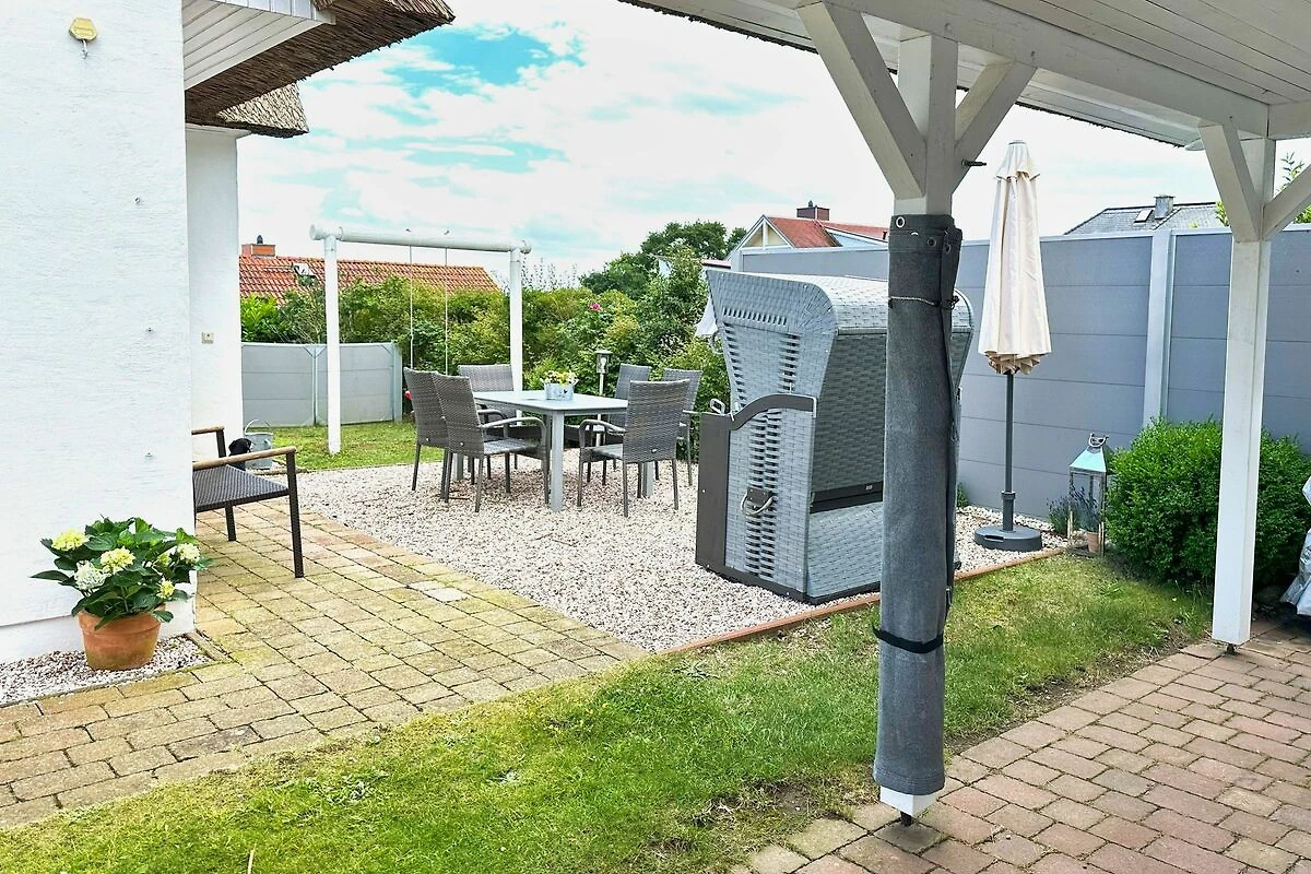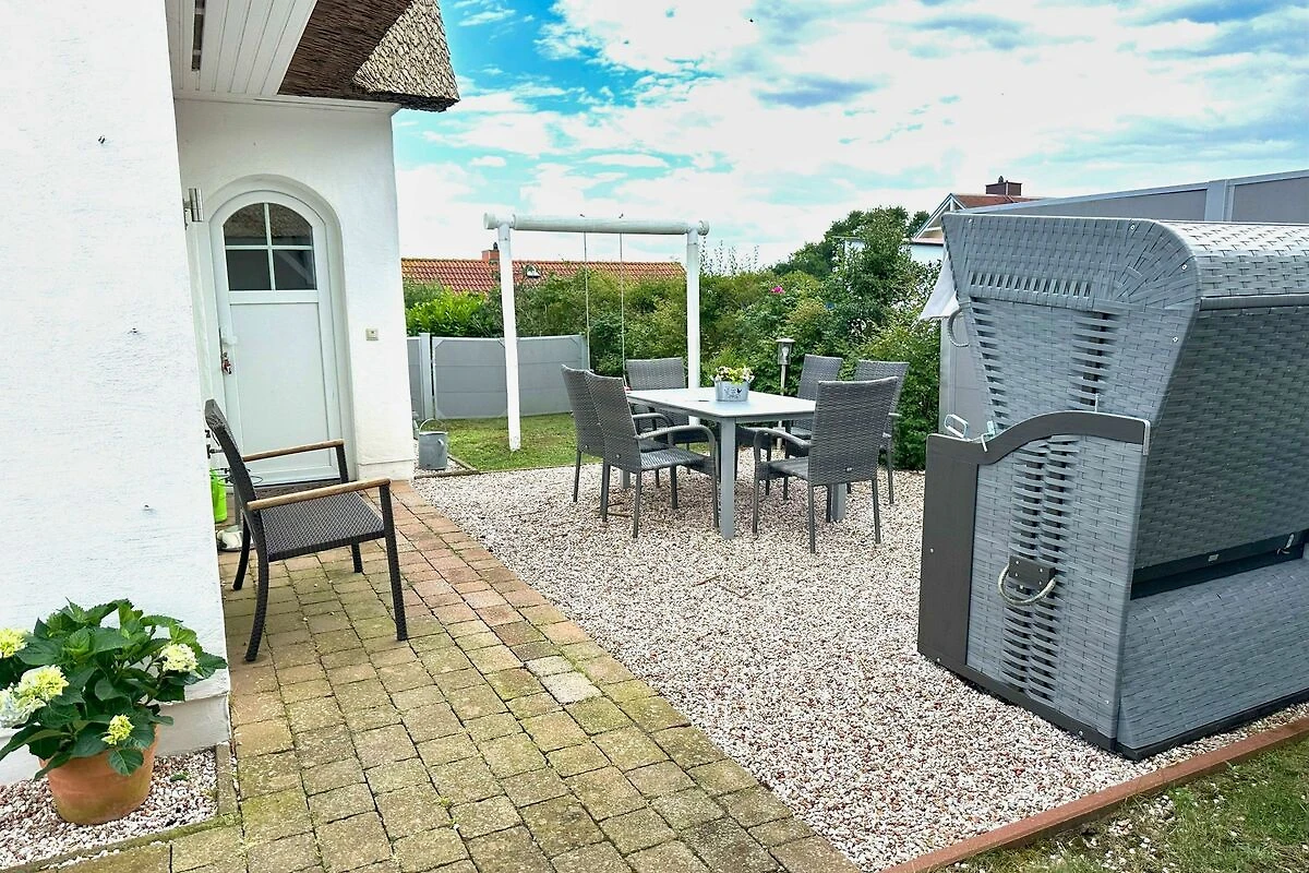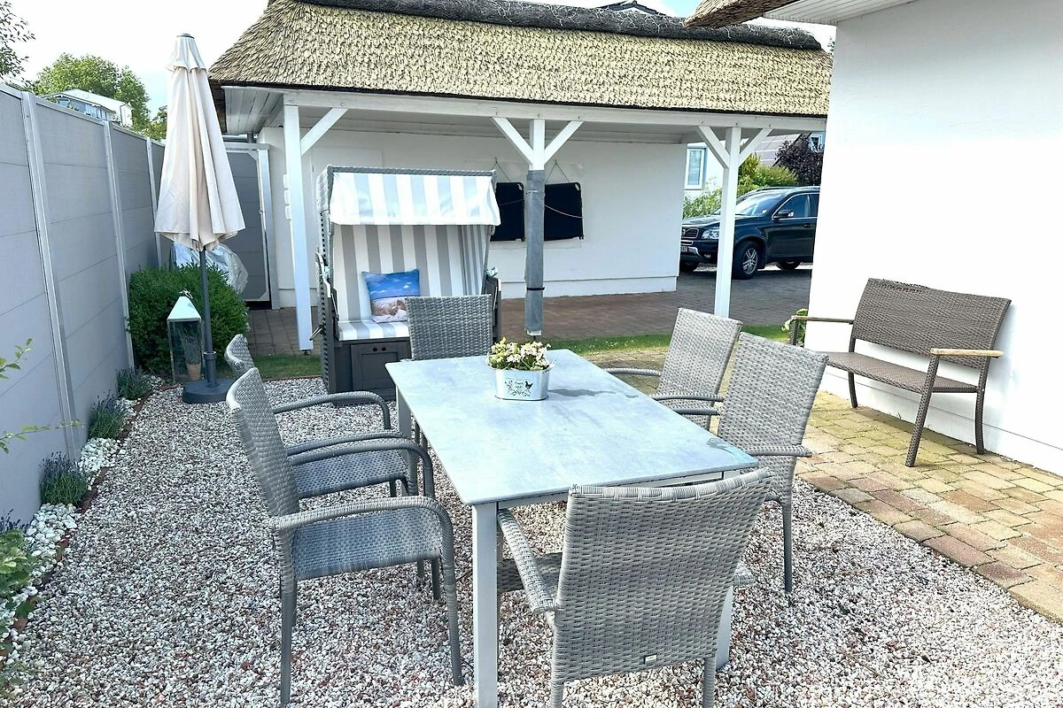 Das moderne Reetdachhaus in Göhren bietet zwei gemütliche Ferienwohnungen, die für 2 bis 4 Personen geeignet sind. Familien mit Kindern und Hunde sind hier herzlich willkommen. Nutzen Sie den gemeinsamen Garten und genießen Sie den herrlichen Blick auf das Meer, der sich vom Südstrand Göhren bis hin zum Mönchgut und dem Thiessower Südperd erstreckt.