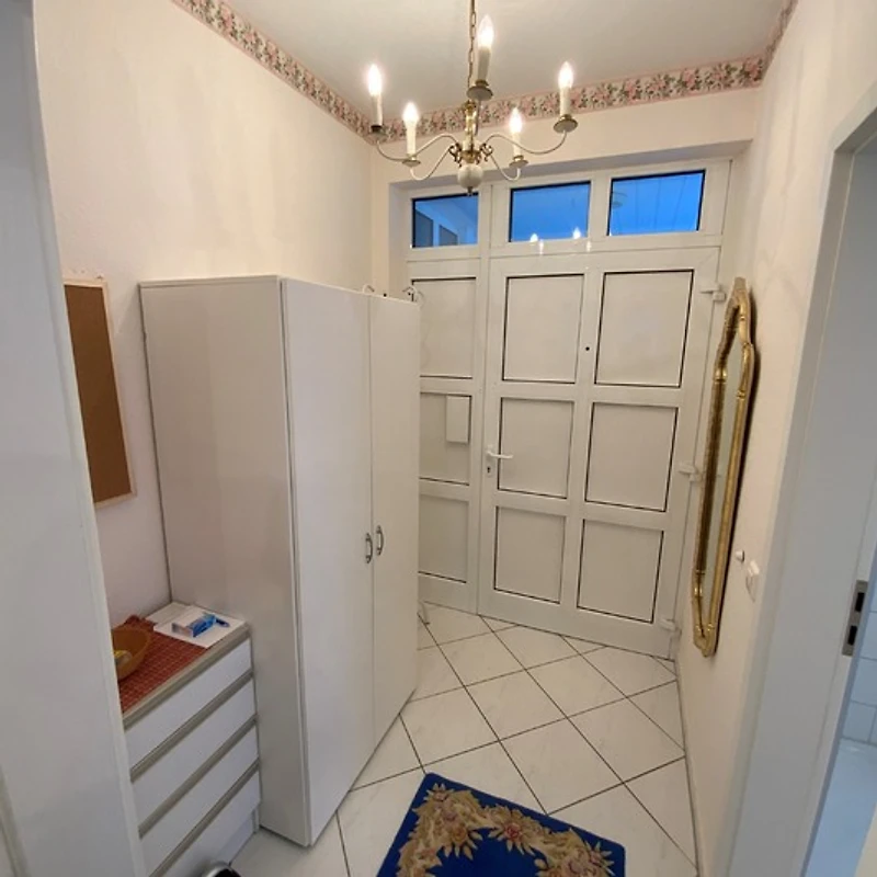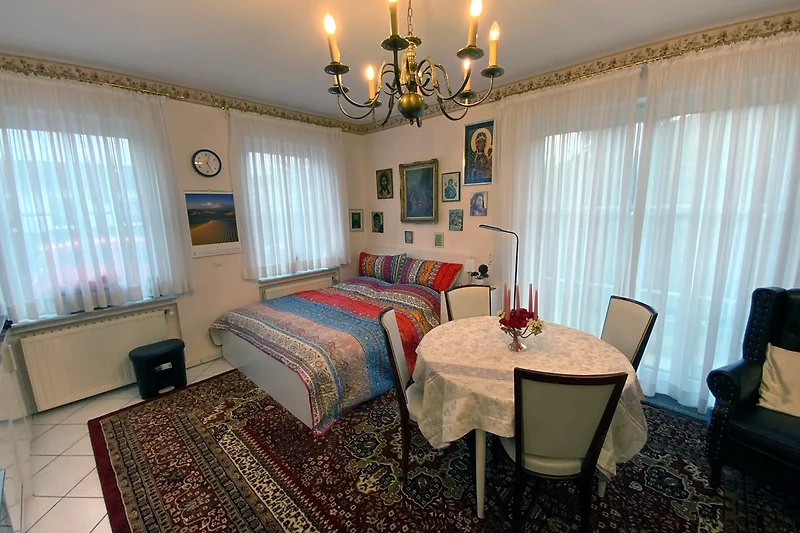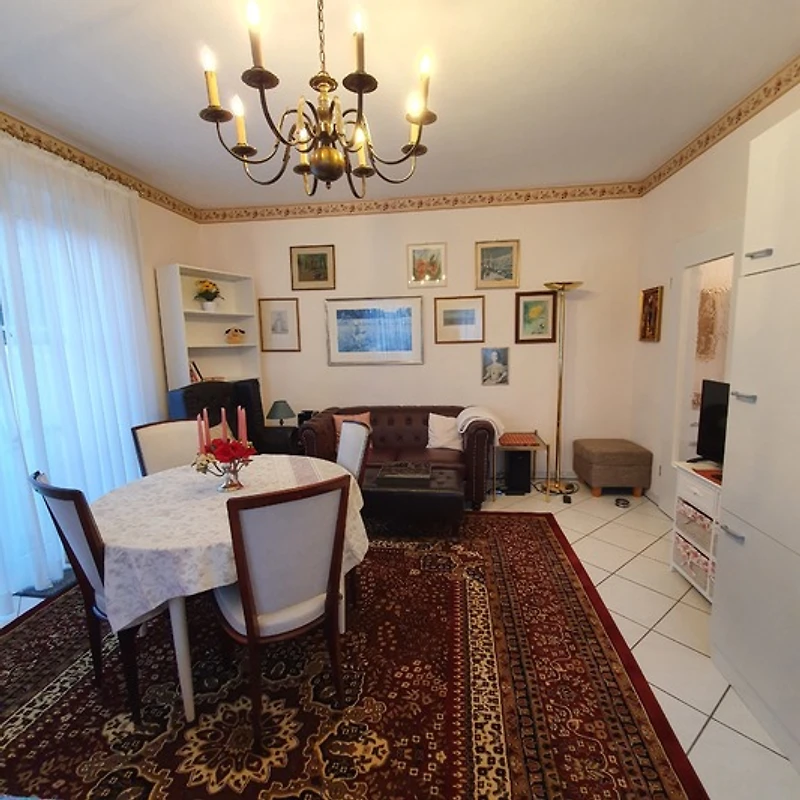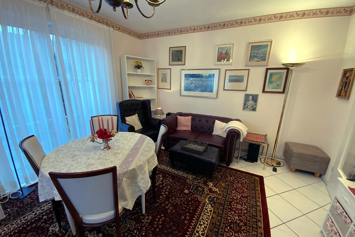 Das gemütliche, gepflegte Appartement ist eine Einliegerwohnung und hat einen separaten Eingang. Das ca. 30 m² grosse Wohn-/Schlafzimmer ist ausgestattet mit einem grossen Doppelbett, einer Sitzecke und einer Küchenzeile mit Kühlschrank, Herd, Mikrowelle und Geschirrspüler. Im Bad mit Dusche und Toilette befinden sich Waschmaschine und Trockner. Eine kleine Terasse mit Standkorb ist vorhanden. Es gibt einen PKW-Einstellplatz und Fahrradabstellmöglichkeiten. Bäckereien, Lebensmittelgeschäft und Bushaltestelle sind in der Nähe.