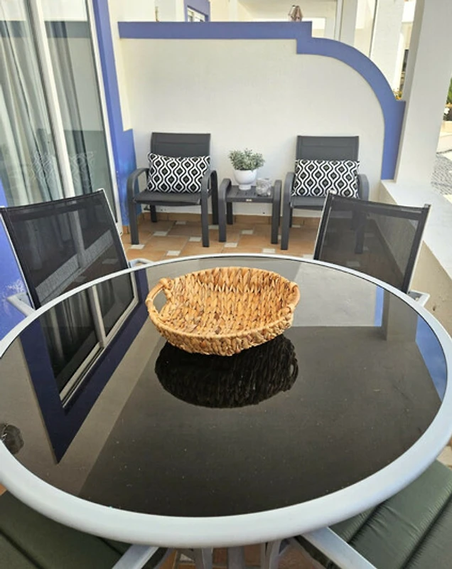 Die Unterkunft verfügt über garten, gartenmöbel, waschmaschine, bügeleisen/-brett, internet (WLAN), haartrockner, balkon, klimaanlage, swimming-pool gemeinschaftlicher swimming-pool, TV, sat-tv (Sprachen: Spanisch, Englisch).