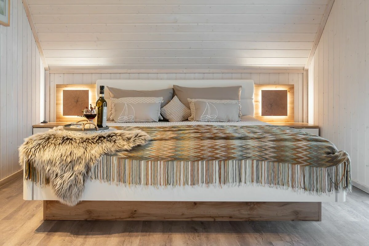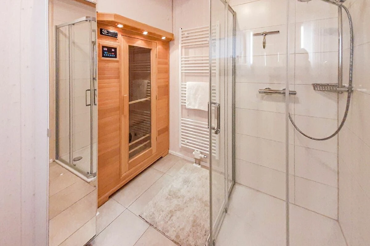 Willkommen im freistehenden Feriendomizil "Kuschelhaus" in Olpenitz – Ihr perfekter Rückzugsort für einen unvergesslichen Urlaub! Dieses charmante Refugium vereint gemütlichen Komfort mit modernen Annehmlichkeiten und sorgt so für eine Wohlfühlatmosphäre, die Sie vom ersten Moment an begeistern wird. Der offene Wohn-Essbereich bildet das Herzstück des Hauses. Hier können Sie es sich auf dem gemütlichen Sofa bequem machen, das sich bei Bedarf in ein komfortables Schlafsofa verwandeln lässt. Der Kamin verbreitet eine angenehme Wärme an kühlen Abenden. Die voll ausgestattete Küche ist ein Paradies für Hobbyköche und lässt keine Wünsche offen: Mit einem Ceran-Kochfeld, Backofen, Mikrowelle und einer Spülmaschine sind Sie bestens gerüstet, um kulinarische Köstlichkeiten zu zaubern. Zusätzlichen Komfort bieten eine Waschmaschine und ein Trockner, die Ihnen die Möglichkeit geben, auch während Ihres Aufenthalts stets frische Wäsche zur Verfügung zu haben. Die beiden Schlafzimmer versprechen erholsame Nächte und angenehme Träume. Das erste Schlafzimmer verwöhnt Sie mit einem großzügigen Doppelbett (180x200cm) und bietet reichlich Platz im geräumigen Kleiderschrank. Ein Smart-TV sorgt für abendliche Unterhaltung. Das zweite Schlafzimmer ist mit zwei Boxspringbetten (je 90x200 cm) ausgestattet und ebenfalls mit einem Kleiderschrank und Smart-TV versehen. Beide Schlafzimmer verfügen über Verdunkelungsmöglichkeiten, damit Sie ungestört schlafen können. Im Erdgeschoss befindet sich ein modern gestaltetes Badezimmer mit Dusche, WC, Handtuchheizung und Föhn. Ein besonderes Highlight ist die luxuriöse Infrarotsauna, die wohltuende Entspannung nach einem Tag voller Aktivitäten bietet. Das obere Badezimmer begeistert mit einem Dachfenster, das Tageslicht hineinlässt, während der Sichtschutz Ihre Privatsphäre wahrt. Hier können Sie in der Badewanne entspannen und die wohlige Wärme der Handtuchheizung genießen. An sonnigen Tagen lädt die großzügige, nach Südwesten ausgerichtete Terrasse zum Verweilen ein. Hier finden Sie bequeme Outdoormöbel, zwei Gartenliegen, eine Hängematte, einen Sonnenschirm und einen Holzkohlegrill, der perfekte Voraussetzungen für gesellige Grillabende bietet. Der Garten verfügt über einen Schuppen, der ausreichend Platz für mitgebrachte oder beim Tourguide gemietete Fahrräder bietet. Zwei eigene Parkplätze direkt am Haus sorgt für zusätzlichen Komfort. Für Unterhaltung ist im "Kuschelhaus" ebenfalls bestens gesorgt: Eine Wii-Spielekonsole mit einer Auswahl an Spielen steht Ihnen zur Verfügung, ebenso wie eine umfangreiche Spielesammlung für gesellige Abende. Für die kleinen Gäste sind ein Kinderhochstuhl und ein Kinderreisebett vorhanden, ebenso ein ausziehbares Treppenschutzgitter. Alle Fenster im Haus sind mit Sichtschutz ausgestattet, um Ihnen ein Höchstmaß an Privatsphäre zu gewährleisten. Das "Kuschelhaus" besticht durch seine liebevolle und stilvolle Einrichtung, die Ihnen das Gefühl vermittelt, zu Hause angekommen zu sein. Erleben Sie einen unvergesslichen Urlaub in dieser idyllischen Oase, wo Gemütlichkeit und Komfort im Einklang sind.