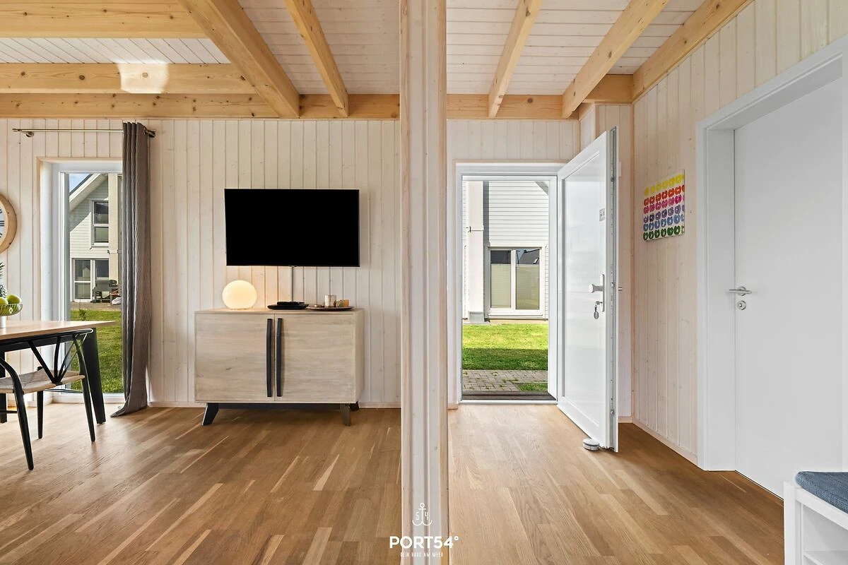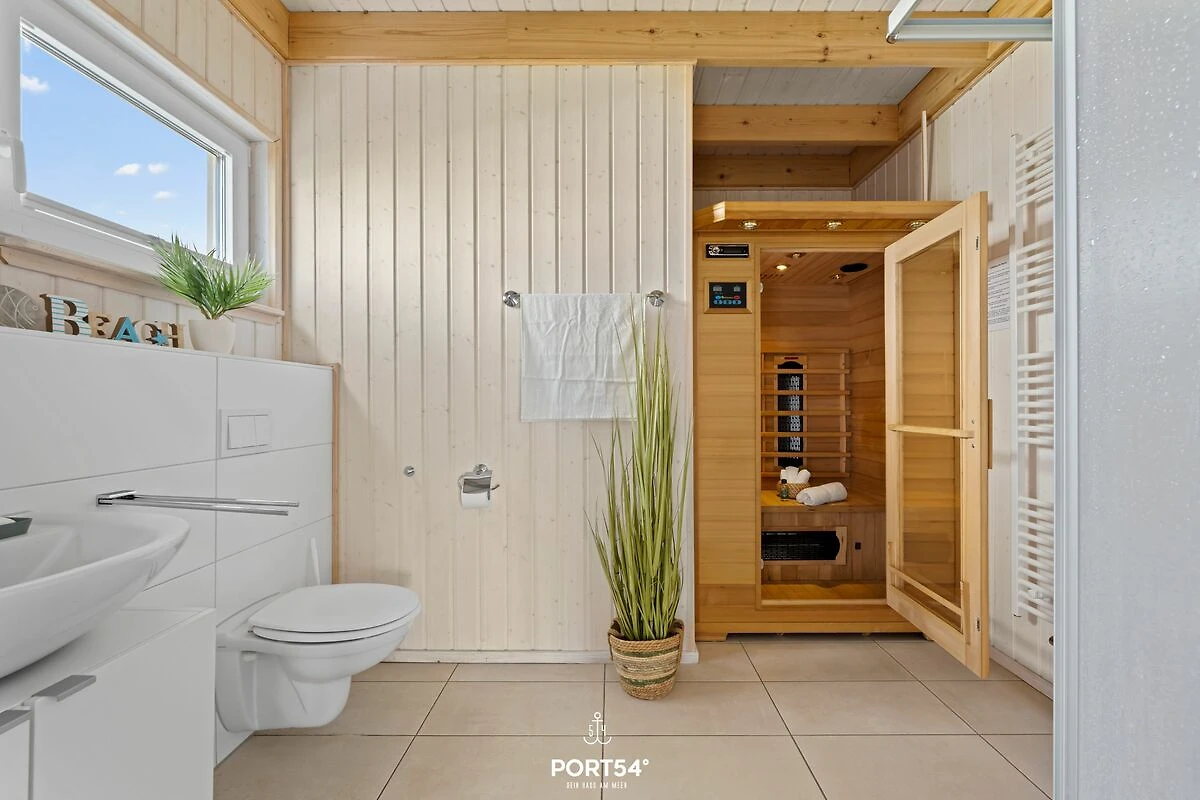 Willkommen im "Danning Deern" in Olpenitz! Machen Sie Urlaub an der Ostsee! Das Ferienhaus bietet auf 80m² einen offenen Wohn- und Essbereich mit Kaminofen, eine Küche, zwei Schlafzimmer, zwei Badezimmer und eine Terrasse. Entspannen Sie auf dem Sofa vor dem Flachbild-TV oder lassen Sie Ihre Urlaubstage auf der Terrasse ausklingen. Das Sofa im Wohnbereich lässt sich zu einem Schlafsofa umfunktionieren und bietet Ihnen somit eine Ausweichmöglichkeit. An den kühleren Tagen sorgt hier der Kaminofen für eine gemütliche Wärme. In der vollausgestatteten Küche lassen sich leckere Gerichte zaubern. Für unsere kleinen Gäste gibt es einen Kinderhochstuhl und in beiden Bädern sind jeweils einen Kindertritthocker und ein Töpfchen vorhanden. Das eine Schlafzimmer bietet ein Doppelbett (180x200cm) und das andere Schlafzimmer zwei Einzelbetten (je 90x200cm). Beide Zimmer sind mit Kleiderschränken und Verdunkelungsmöglichkeiten ausgestattet. Ein Badezimmer befindet sich im Erdgeschoss und ist mit einer Dusche und dem Highlight: einer Infrarot-Sauna ausgestattet. Hier können Sie sich an kalten Tagen aufwärmen und entspannen! Das andere Badezimmer befindet sich im Obergeschoss und bietet eine Duschwanne und einen Föhn. Auf der Terrasse sind neben Gartenmöbeln, ein Sonnenschirm, ein Holzkohlegrill und Sonnenliegen zum Entspannen zu finden. Gemütlichen Grillabenden an lauen Sommertagen steht also nichts im Wege! Ihre vierbeinigen Familienmitglieder sind ebenfalls herzlich willkommen, für sie stehen im Haus bereits Näpfe bereit. Ein Außenstellplatz für Ihren PKW ist vor dem Haus vorhanden.