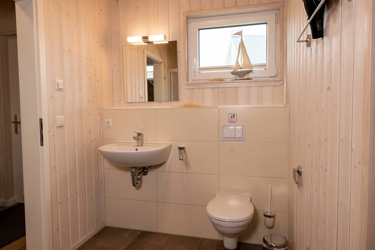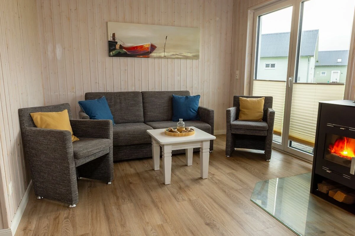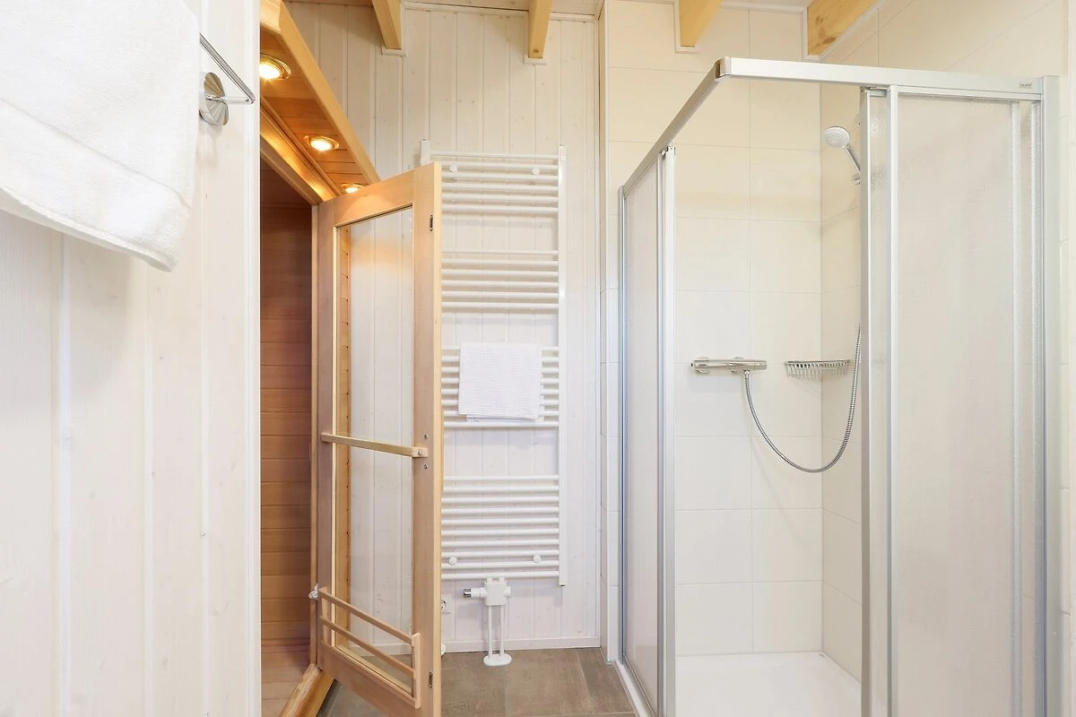 Das freistehende Ferienhaus "Fernweh" erstreckt sich über großzügige 80m² und lädt mit seinem offenen Wohn-Essbereich und einer warmen Atmosphäre zum Entspannen ein. Das Herzstück des Wohnzimmers bildet ein Kamin, der an kühleren Abenden wohlige Wärme spendet. Große Fenster durchfluten den Raum mit natürlichem Licht und sorgen für ein helles und großzügiges Wohngefühl. Die voll ausgestattete Küche lässt keine Wünsche offen: Neben einem Ceran-Kochfeld und einem Backofen stehen auch eine Mikrowelle und eine Spülmaschine zur Verfügung. Praktischerweise ist in der Küchenzeile sogar eine Waschmaschine integriert. Im Erdgeschoss erwartet Sie ein großzügiges Bad mit Fenster und Sichtschutz, WC, Dusche und einer Handtuchheizung. Als besonderes Highlight finden Sie hier auch eine Infrarot-Kabine, die nach einem erlebnisreichen Tag für entspannende Momente sorgt. Die beiden Schlafzimmer befinden sich im Obergeschoss. Das erste Schlafzimmer ist mit einem großen Boxspringbett (180x200cm), einem Kleiderschrank, einer Kommode und einem Flachbild-TV ausgestattet. Das zweite Schlafzimmer verfügt über zwei gemütliche Boxspringbetten (je 90x200cm) und einen geräumigen Kleiderschrank. Ein weiteres Badezimmer im Obergeschoss, ausgestattet mit Dachfenster und Sichtschutz, Badewanne, WC und Handtuchheizung, rundet das Raumangebot ab. Für die kleinen Gäste stehen ein Kinderreisebett und ein Kinderhochstuhl bereit. Die Terrasse des Ferienhauses ist mit gemütlichen Outdoormöbeln, einem Sonnenschirm und einem Holzkohlegrill perfekt für gesellige Abende im Freien eingerichtet. Ein Parkplatz ist ebenfalls vorhanden, sodass Sie Ihr Auto bequem abstellen können. Im Ferienhaus "Fernweh" finden Sie alles, was Sie für einen erholsamen und komfortablen Urlaub benötigen. Genießen Sie Ihre Auszeit in dieser liebevoll gestalteten Unterkunft und lassen Sie die Seele baumeln.