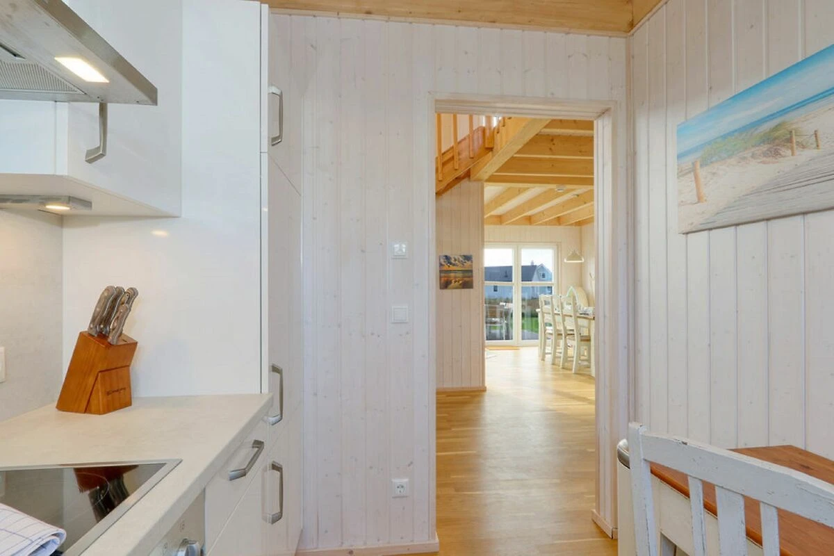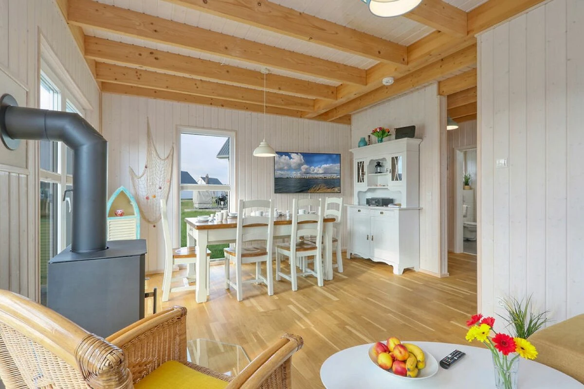 Die „Villa Bullerbü“ empfängt Sie mit einem freundlichen offenen Wohn- und Essbereich, einer voll ausgestatteten Küche, zwei behaglichen Schlafzimmern und zwei modernen Bädern. Nach einem langen Strandspaziergang lädt Sie das kuschelige Sofa vor dem knisternden Kamin zum gemütlichen Entspannen ein – vielleicht mit Ihrer Lieblingsserie auf dem Flachbild-TV. Das Sofa lässt sich bei Bedarf in eine komfortable Schlafcouch verwandeln.
