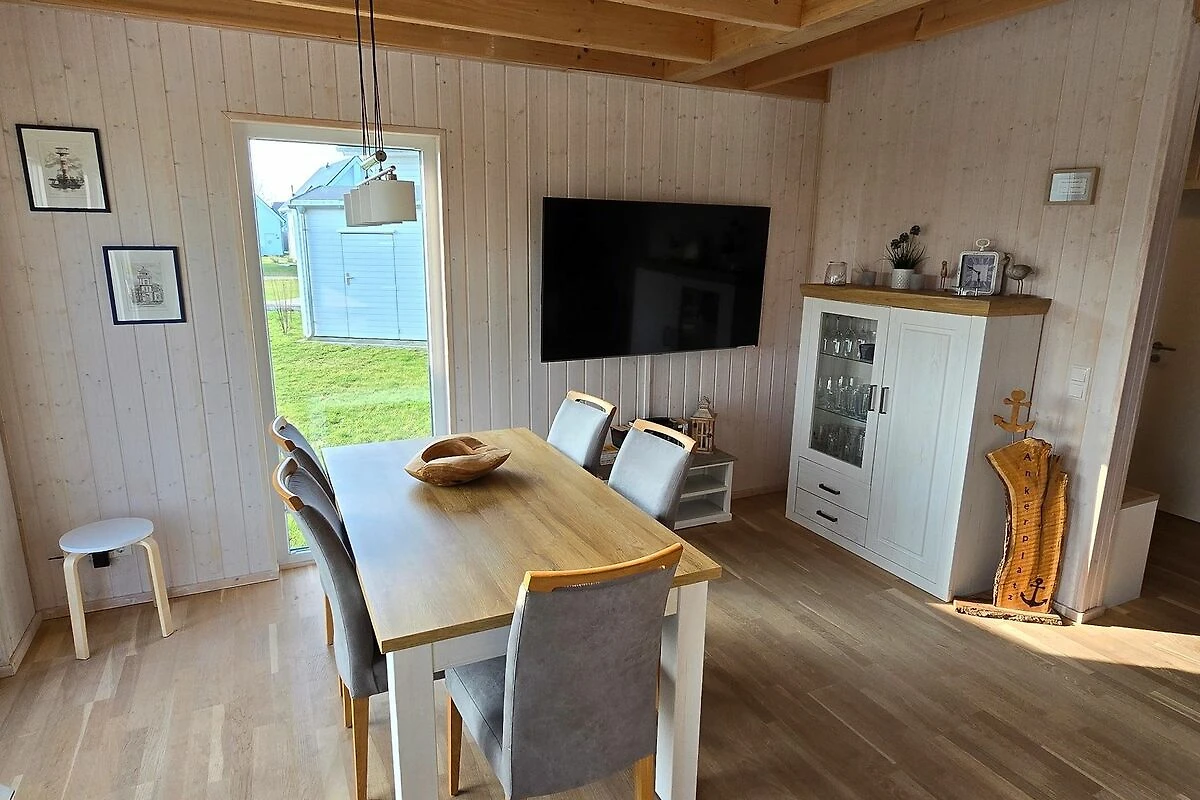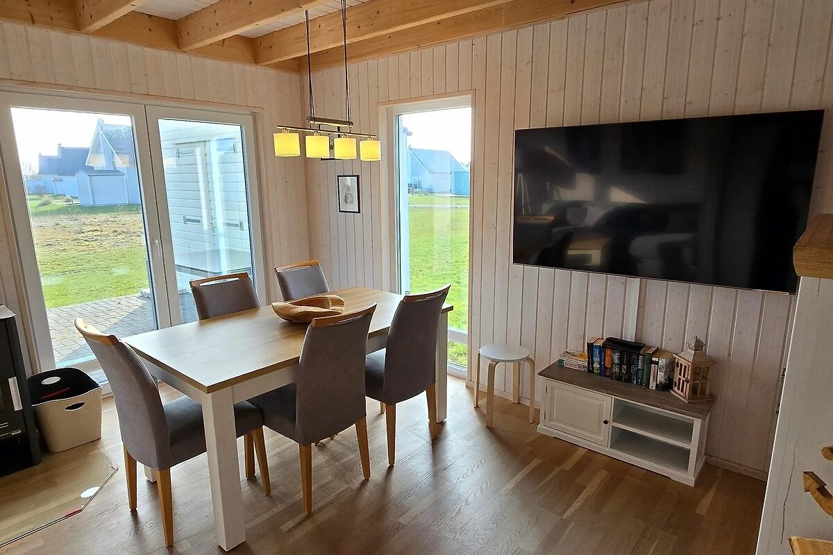 Willkommen im Haus "Frische Brise" in Olpenitz! Das Haus verfügt über einen offenen Wohn- und Essbereich, eine Küche, zwei Schlafzimmer und zwei Bäder. Nach langen Strandspaziergängen können Sie auf dem gemütlichen Sofa vor dem Kamin entspannen und Ihre Lieblingsserie auf dem Flachbild-TV schauen. Das Sofa kann zu einer Schlafcouch ausgezogen werden und eignet sich als Schlafmöglichkeit für ein Kind. Die Küche bietet alles, was Sie für einen geselligen Kochabend mit der Familie benötigen. Im ersten Obergeschoss befinden sich die zwei Schlafzimmer. Das eine ist mit einem Doppelbett (180x200cm) und einem Flachbild-TV ausgestattet, das andere verfügt über zwei Einzelbetten (je 90x200cm). Beide Schlafzimmer sind mit jeweils mit einem Kleiderschrank und Verdunkelungsmöglichkeiten ausgestattet. Für die kleinen Gäste steht ein Babybett und ein Kinderhochstuhl zur Verfügung. Ein Badezimmer befindet sich im Erdgeschoss und ist mit einer ebenerdigen Dusche und dem Highlight: einer Infrarot-Sauna ausgestattet. Hier können Sie sich an kalten Tagen aufwärmen und entspannen! Das andere Badezimmer befindet sich im Obergeschoss bietet eine Duschwanne und einen Föhn. An sonnigen Tagen können Sie es sich auf der möblierten Terrasse gemütlich machen! Die Sonnenliegen laden zum relaxen ein und an lauen Sommerabenden können Sie die Tage auf der Terrasse ausklingen lassen. Das Ferienhaus ist für maximal vier Erwachsene und ein Kind vorgesehen. Ihre Fellnasen können Sie gerne mitbringen! Für Ihre PKWs stehen zwei Stellplätze vor dem Haus zur Verfügung. Im abschließbaren Fahrradschuppen können Sie Ihre mitgebrachten oder bei uns geliehenen Fahrräder unterstellen.