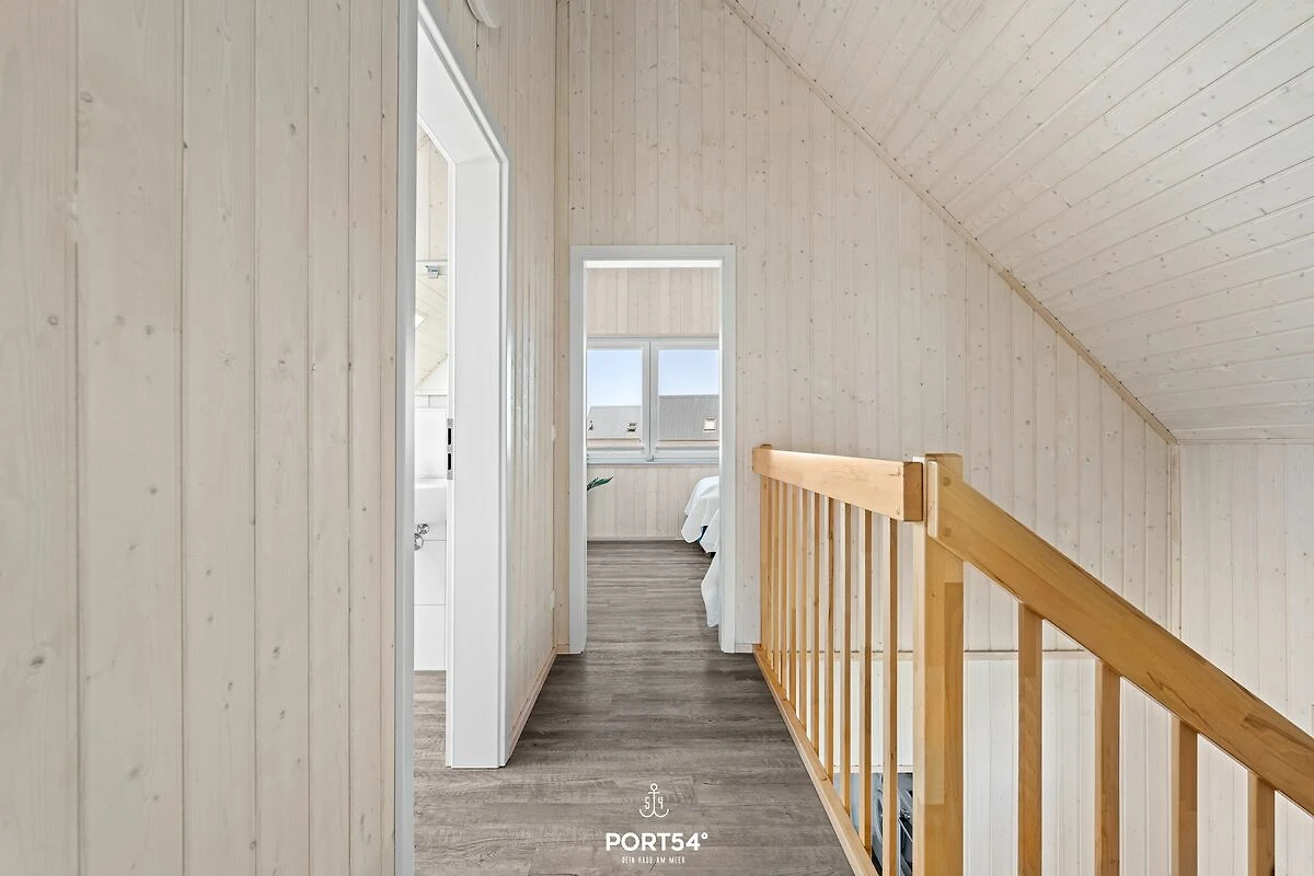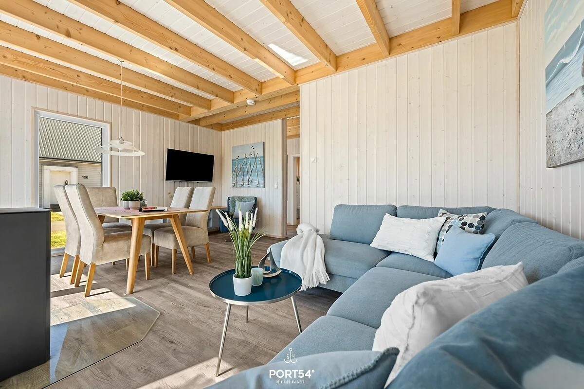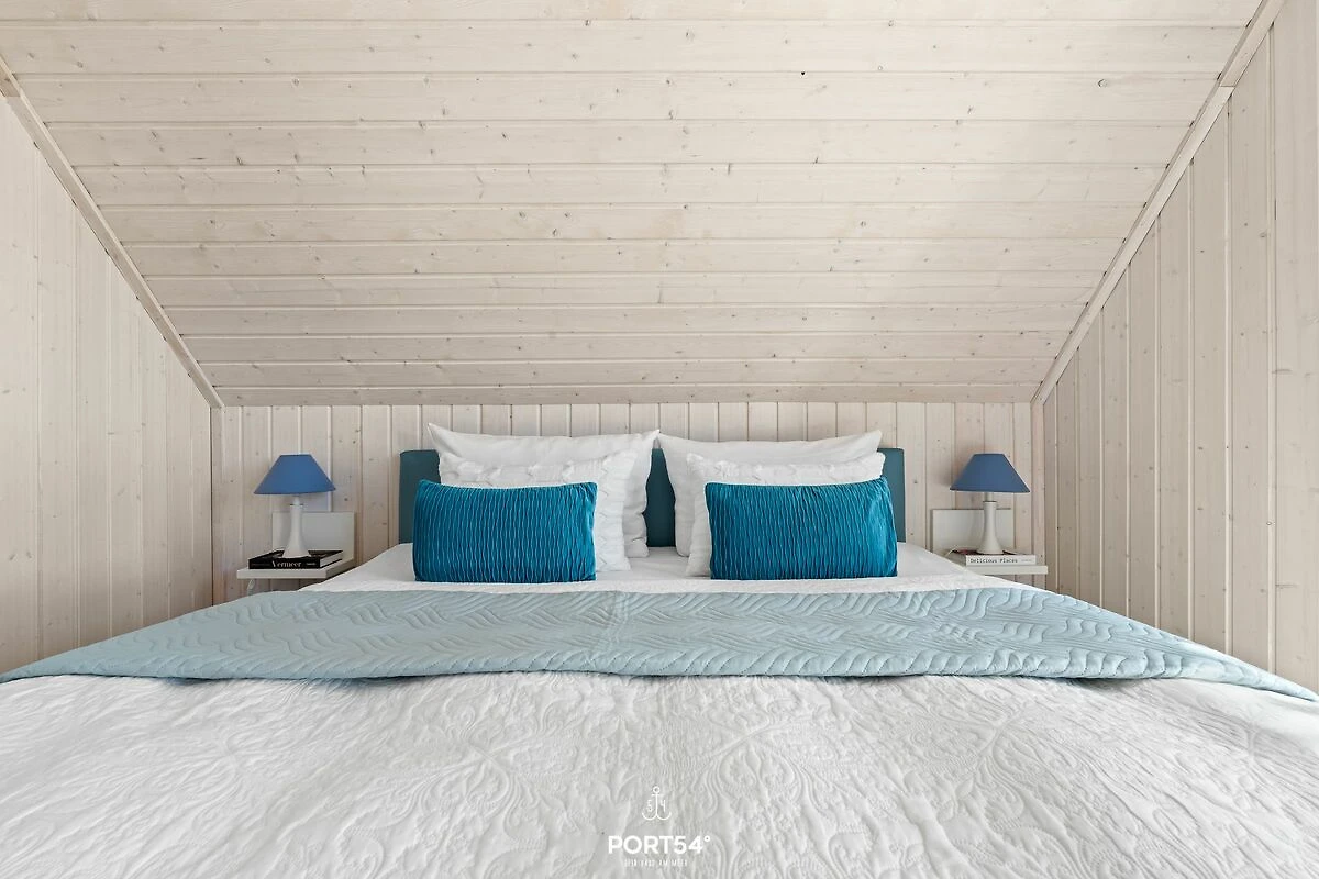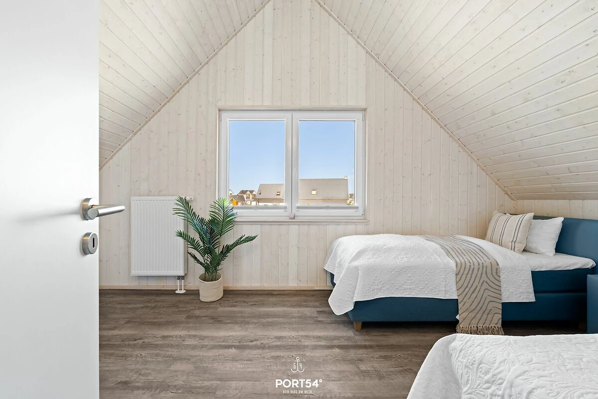 Herzlich Willkommen im "Wellenreiter" im OstseeResort Olpenitz. Einziehen und sich wie zu Hause fühlen – besser kann ein Urlaub nicht beginnen. Ihr freistehendes Ferienhaus besticht durch seine Lage, umgeben von einer grünen Wiese in unmittelbarer Nähe zur Ostsee. Bereits bei Eintritt verspüren Sie die Gemütlichkeit Ihres Ferienhauses. Hier besticht nicht nur die hochwertige Einrichtung, sondern auch als weiteres Highlight - ein Kamin im Wohnzimmer, der eine wohlige Wärme ausstrahlt. An kalten Tagen können Sie es sich dort nach langen Strand-Spaziergängen gemütlich machen. Liebevoll ausgesuchte Dekoration rundet die gemütliche Atmosphäre ab. Bei Sonnenschein sorgen die großen Panorama-Fenster für ein lichtdurchflutetes Wohlfühl-Ambiente. Im Wohnzimmer steht Ihnen ein Schlafsofa zur Verfügung, auf der noch eine weitere Person Platz findet. Weiterhin befindet sich im Erdgeschoss ein modernes Wellness-Bad mit einer Infrarotkabine, Dusche und WC. Die modern eingerichtete Küche lässt keine Wünsche offen. Sie finden hier alles, um sich und Ihre Mitreisenden kulinarisch verwöhnen zu können. Vom Wohnzimmer aus betreten Sie die 12m² große Terrasse, die zum Entspannen einlädt. Die Terrasse bietet neben Gartenmöbeln einen Sonnenschirm, sowie einen Holzkohlegrill. Gemütlichem Grillen an lauen Sommerabenden steht also nichts im Wege. Im Obergeschoss befinden sich zwei großzügige Schlafzimmer mit Boxspringbetten. Ein Schlafzimmer verfügt über ein Boxspringbett (200x200cm), im zweiten Schlafzimmer befinden sich zwei Einzel-Boxspringbetten (je 100x200cm). Ein zweites Bad, ausgestattet mit Badewanne, WC und Föhn rundet das Obergeschoss ab. Für Ihren PKW steht vor dem Haus ein Stellplatz zur Verfügung. Das Haus wird für 4 Erwachsene und 1 Kind angeboten.