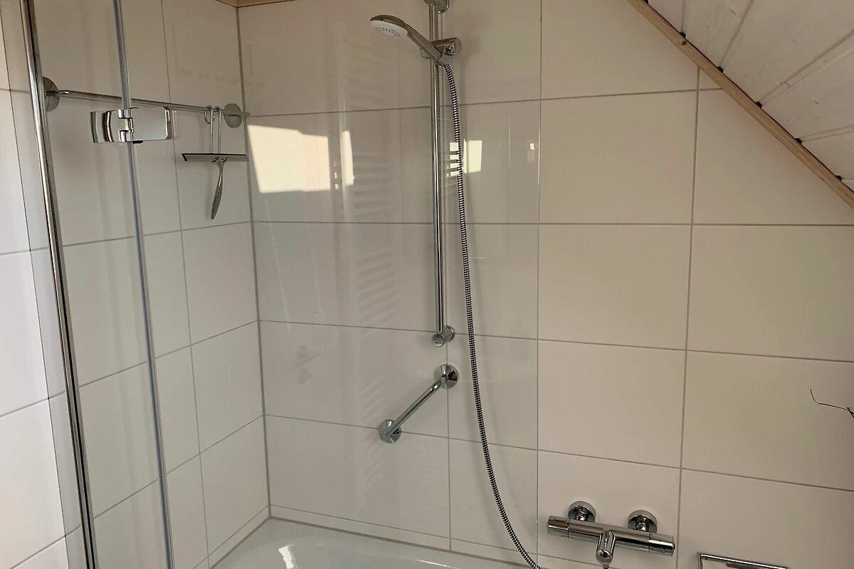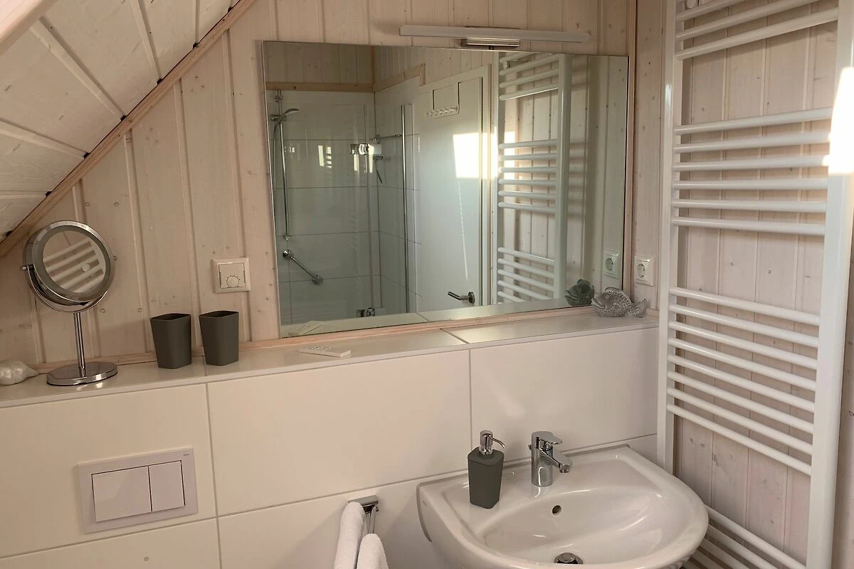 Herzlich Willkommen in Ihrem Ferienhaus "Schwalbennest" in Olpenitz. Ihr freistehendes, 80m² großes Feriendomizil verfügt über einen großzügigen Wohn- und Essbereich, zwei Schlafzimmer, zwei Bäder und eine Küche. Durch die Liebe zum Detail und der hochwertigen Ausstattung werden Sie sich gleich wie Zuhause fühlen. Die großen Fenster sorgen für ein lichtdurchflutetes, großzügiges Wohngefühl. Im Wohnbereich können Sie es sich auf dem Sofa gemütlich machen, ein gutes Buch lesen oder auf dem Flachbild-TV Ihre Lieblingsserie schauen. An kühlen Abenden verbreitet der Kamin eine wohlige Wärme. Die voll ausgestattete Küche bietet alles, um sich und Ihre Familie kulinarisch zu verwöhnen. Ein Bad rundet das Erdgeschoss ab. Das Badezimmer verfügt über ein Fenster mit Sichtschutz, eine Dusche, eine Handtuchheizung und über ein besonderes Highlight: eine Infrarotkabine. Hier können Sie sich nach langen Strandspaziergängen aufwärmen und entspannen. Im Obergeschoss befinden sich zwei Schlafzimmer. Eines der beiden Zimmer bietet ein gemütliches Doppelbett (180x200cm), einen Schrank, sowie einen Flachbild-TV. Das zweite Schlafzimmer ist mit zwei Einzelbetten (90x200cm), sowie ebenfalls mit einem Schrank und einer Kommode ausgestattet. Beide Zimmer verfügen über Verdunkelungsmöglichkeiten, sodass einem erholsamen Schlaf nichts mehr im Wege steht. Das Bad im Obergeschoss bietet ein Dachfenster mit Sichtschutz, eine Badewanne, eine Handtuchheizung, einen Föhn und ein weiteres WC. Genießen Sie die große, möblierte Terrasse um zu entspannen, Grillabende zu veranstalten oder einfach auf der Sonnenliege die Seele baumeln zu lassen. Für Ihre mitgebrachten oder beim Tourguide gemieteten Räder steht Ihnen einen Fahrradständer als auch ein abschließbarer Schuppen zur Verfügung. Direkt vor dem Haus finden Sie einen kostenfreien Parkplatz, sowie eine E-Ladesäule. Die Abrechnung erfolgt direkt an der Säule.