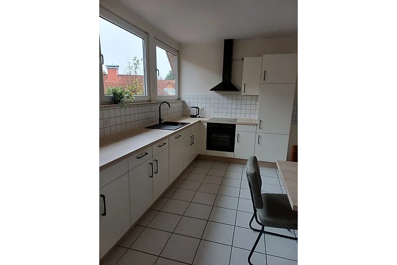 1 komplett ausgestattete Küche mit Ceran-Feld, Backofen, Geschirrspüler, Mikrowelle, Toaster, Wasserkocher,