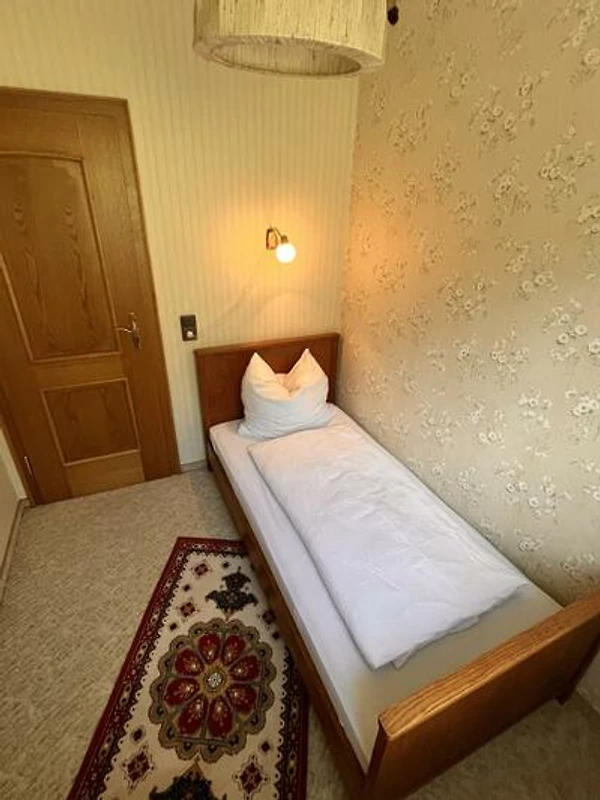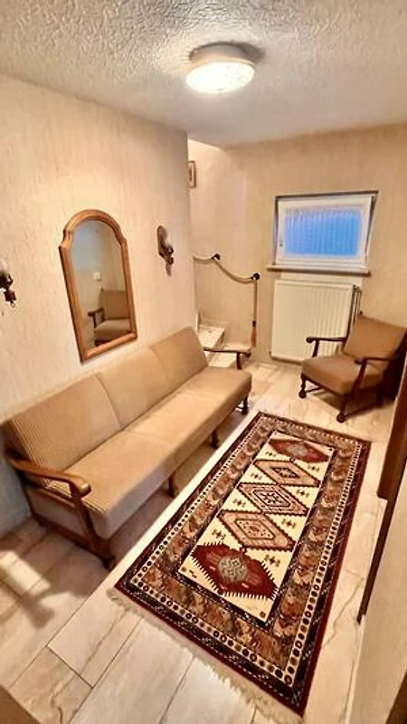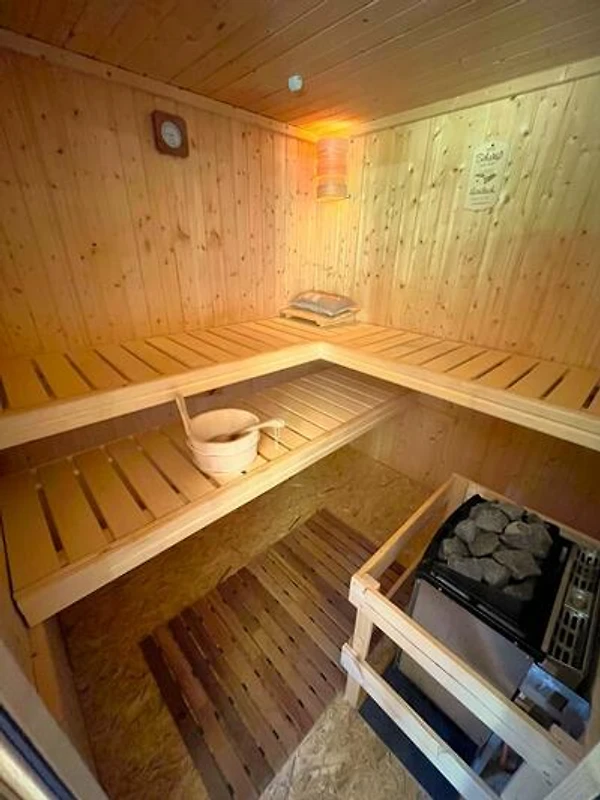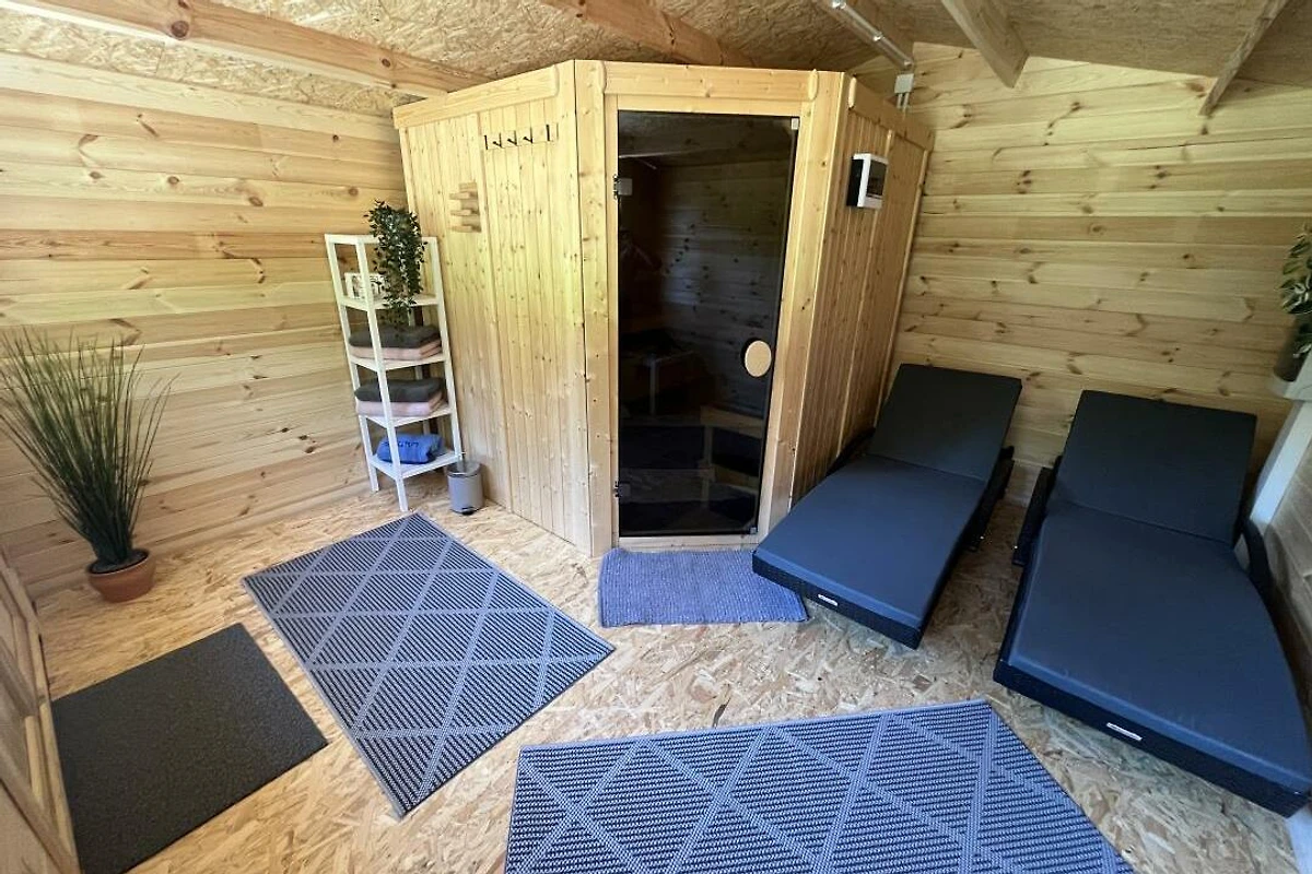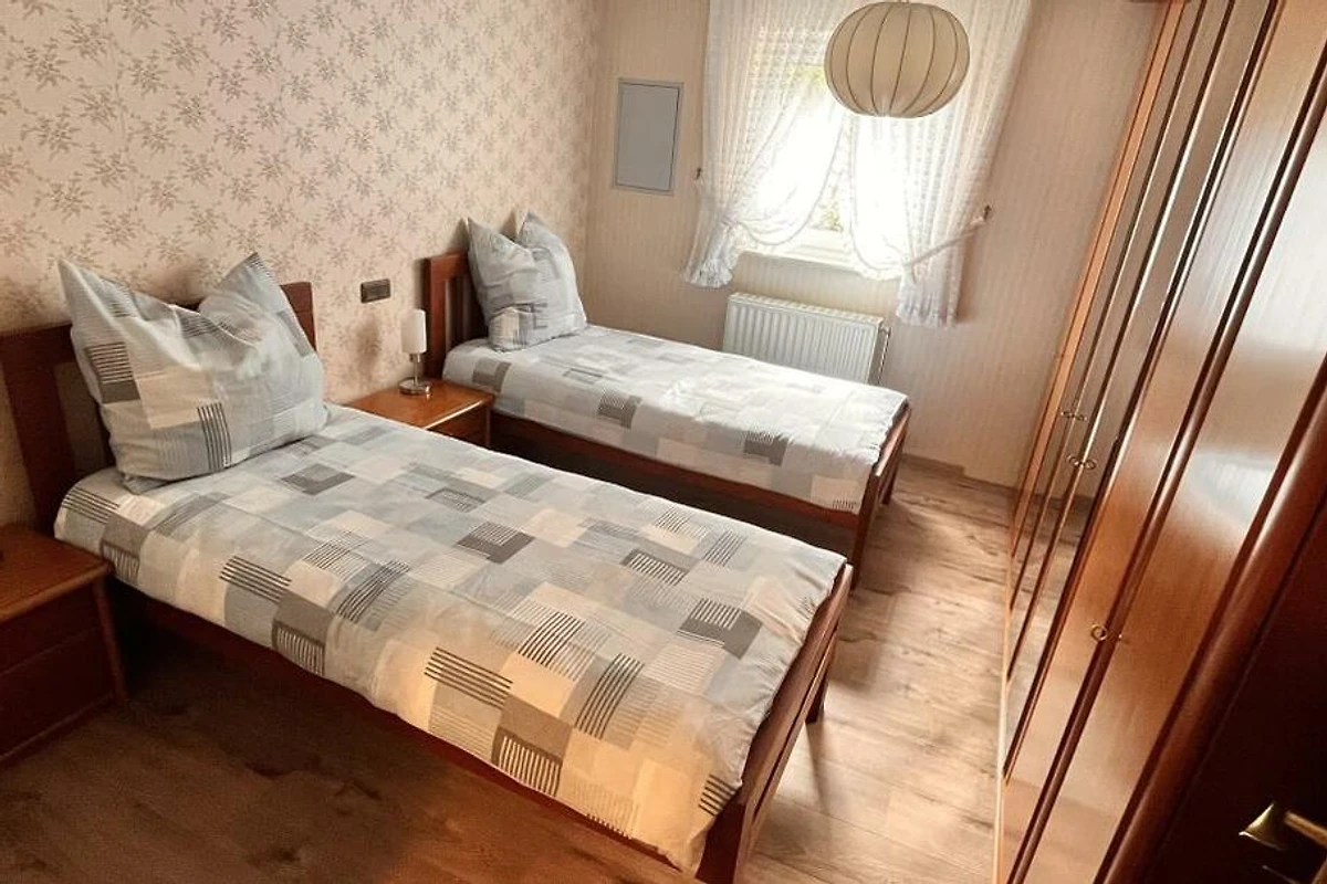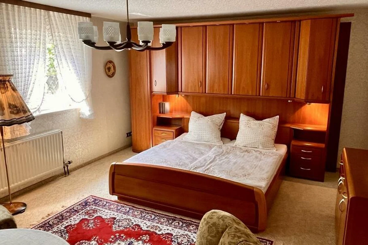 Dieses schöne Häuschen steht am Rande eines ehemaligen, kleinen Feriengebietes auf einer Anhöhe, welches an 3 Seiten von Wald umsäumt ist. Das Grundstück mit knapp 1.500 Quadratmeter liegt zu 2 Seiten direkt am Wald und verfügt über einen Ausblick über das gesamte Tal und die umliegende Umgebung. Hier lebt man Natur pur. Das Haus wurde seit Erbauung nur wenige Tage im Jahr als privates Ferienhaus gehobener Klasse genutzt. Die Einrichtung befindet sich daher in einem sehr gutem Zustand "Original-Zustand" und wird als "Vintage" vermietet. Tauchen Sie ein in die Zeit der 80er-Jahre, fast jeder findet hier "Relikte" seiner Kindheit. Federkern-Sofa, Röhrenfernseher, Wandteppiche, Allibert und Goldrandgeschirr lassen unsere Gäste eine Reise in die Vergangenheit machen. Unser Ferienhaus ist "rundum" ausgestattet. Folgende "Dinge des Alltags" sind vorhanden: Küche: Backofen, Herd, Kühl- und Gefrierschrank, Spülmaschine, Mikrowelle, Toaster, Wasserkocher, Kaffeemaschine, Waffeleisen. Badezimmer: Dusche (80x80cm), Doppelwaschbecken, WC, Föhn. Kleines WC: Waschbecken, WC. Wohnzimmer: Polstergarnitur, Flachbild-Smart-TV, 2 Leder-Relaxsessel. Schlafzimmer 1: Doppelbett 200x200cm. Schlafzimmer 2: Doppelbett 200x180cm (TV). Schlafzimmer 3: ein Einzelbett. Schlafzimmer 4: zwei Einzelbetten. Die grundstückseigene Gartensauna kann gegen Gebühr genutzt werden. Handtücher und Bettwäsche sind im Preis enthalten. Ihr Haustier können Sie gegen eine Gebühr dazu buchen.