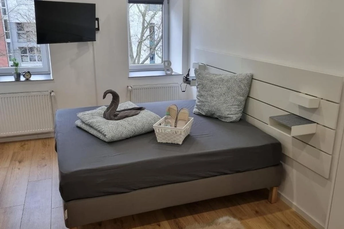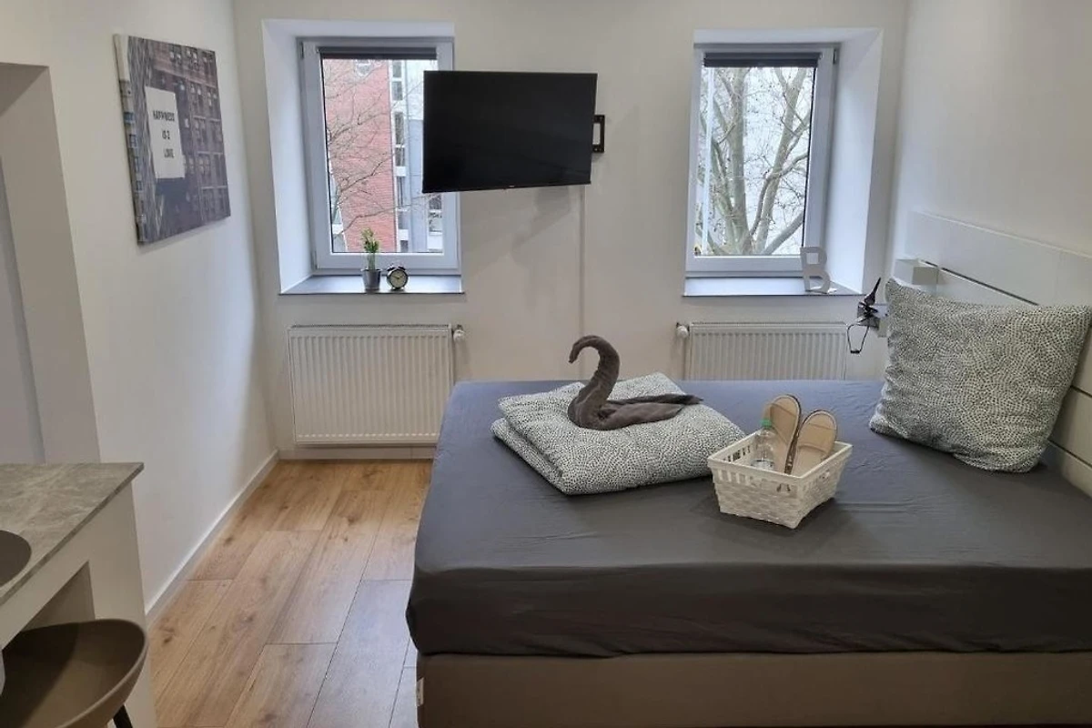 Verbringen Sie eine entspannte Zeit in diesem eleganten Apartment, das für Ihren Komfort bestens ausgestattet ist. Ihr privates Badezimmer bietet kostenlose Pflegeprodukte und Bademäntel, während die moderne Gemeinschaftsküche mit Kühlschrank, Kaffeemaschine und Backofen zum Kochen einlädt. Geniessen Sie den Flachbild-TV mit Streaming-Diensten und die Aussicht auf die Stadt. Die stilvolle Einrichtung und der grosszügige Raum sorgen für eine angenehme Atmosphäre, die Ihren Aufenthalt besonders komfortabel macht. Ideal für einen erholsamen Aufenthalt mit allem, was Sie brauchen, um sich wie zu Hause zu fühlen.