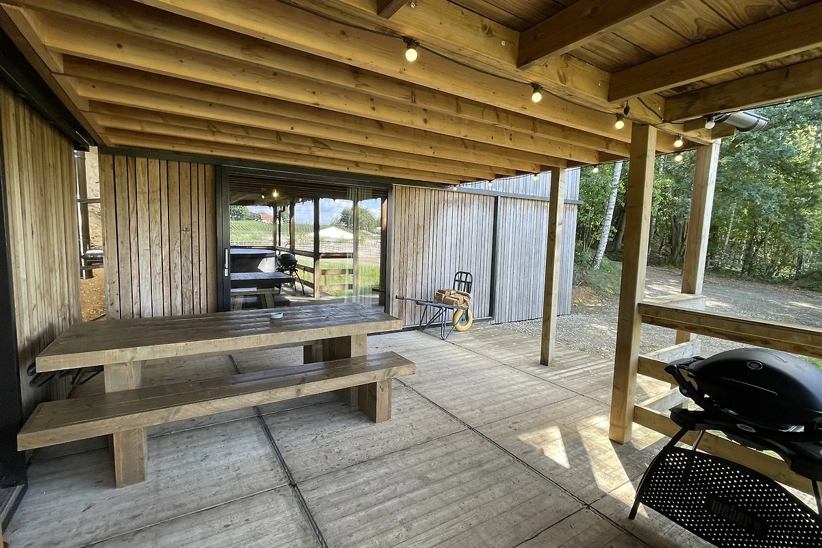 ? Der Shelter ist der richtige Ort für eine gelungene Gruppenunterkunft. Durch die Verbindung von 2 Hütten für je 4 Personen, können Sie das Zusammensein mit Freunden, Familie, Kollegen, ... geniessen.Gemeinsam frühstücken oder grillen, den Whirlpool geniessen, schöne Spaziergänge machen, ... Das alles ist möglich inmitten der schönen Limburger Wälder und mit Blick auf unser Reitsportzentrum.Diese Hütte liegt am Rande des Waldes mit Blick auf den Weinberg, so dass Arbeiten möglich sind (z.B. Gras mähen, spritzen, ...).? Cosy livingDer Shelter besteht aus 2 aufeinanderfolgenden Hütten, die jeweils 4 Personen beherbergen. Eine Hütte ist in eine Küche umgewandelt und die andere hat eine gemütliche Sitzecke. Machen Sie die Küche zum Zentrum der Zweisamkeit, wo gegessen und Brettspiele gespielt werden, während der Wohnbereich den Raum bietet, um sich zu entspannen, ein gutes Buch zu lesen oder einfach im Hier und Jetzt zu sein.Geniessen Sie die Aussicht durch das grosse Fenster und wärmen Sie sich am Holzofen. Es gibt ein Starterpaket für den Holzofen, zusätzliches Holz können Sie selbst in der Holzecke hacken. Bei schönem Wetter können Sie die Hüttentür öffnen und auf die überdachte Terrasse gehen, auf der sich ein grosser Tisch im Freien und der Whirlpool befinden. Abends können Sie im warmen Schein der Öllampe und bei geschlossenen Vorhängen Ihre Dankbarkeit für den schönen Tag zum Ausdruck bringen.Die Küchenzeile ist mit einem Gasherd (2 Brenner), einer Spüle und ausreichend Kochutensilien, Besteck und Gläsern ausgestattet. Sie können nicht auf Ihre tägliche Kaffeepause verzichten? Dann wird Ihnen unsere Bialetti sicher helfen. Vergessen Sie nicht, Ihren gemahlenen Kaffee mitzubringen. Das Leitungswasser ist trinkbar.Geschirrspülmittel und ein Reinigungsset inklusive Küchentuch sind vorhanden. Ein kleiner Kühlschrank befindet sich in der Kochnische.? Sweet dreamsJede Kabine (2x) kann 4 Personen beherbergen, es gibt also 2 Doppelbetten. Das erste Bett ist direkt mit der Küche oder dem Wohnbereich verbunden, wodurch ein offener Raum entsteht. Das zweite Bett ist über eine Treppe zu erreichen und befindet sich separat im ersten Stock. Bettwäsche ist standardmässig vorhanden.? Wash worries away