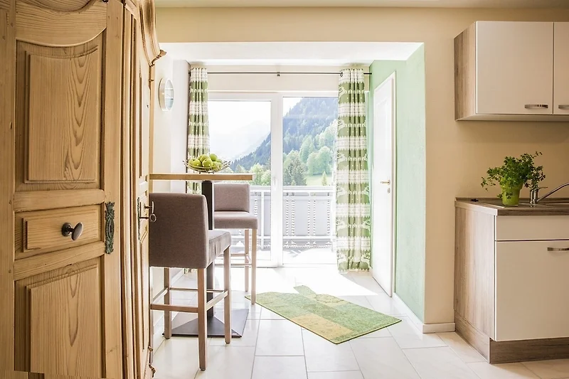 Die Mini Lodge ist die Ferienwohnung für Minimalisten. Für ein bis zwei Personen ist diese Lodge ein super Ausgangspunkt in Ihr Urlaubsabenteuer. Wildgrüne Zirbenholzelemente, das hochwertige Box-Spring-Bett, die moderne Küche und natürlich alpenländische Dekoration sorgen für ein tolles Wohnklima.