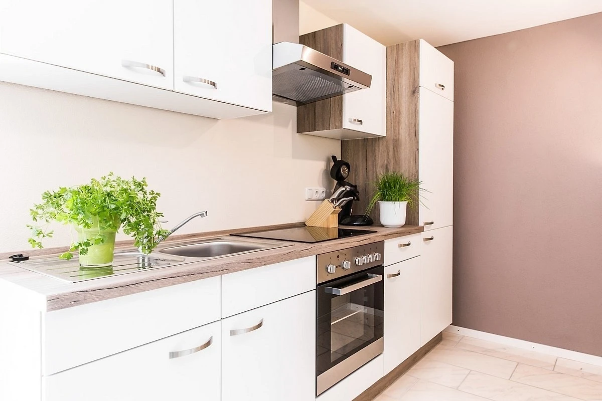 • Kaffee-Maschine, Wasserkocher, Backofen, separate Küche