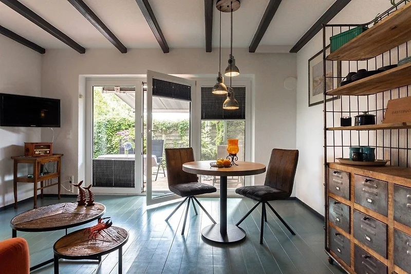 Das ca. 65m2 grosse Haus im friesischen Backstein-Gewand birgt ein spannendes Interieur: Moderner Industrie-Style mit den klassischen Materialien und Farben dieser Einrichtungswelt: Holz, Metall, Betonoptik, dazu die warmen Farben Koralle, Rost, Patina-Türkis. Lassen Sie sich von hochwertigster Einrichtung und Deko überraschen!