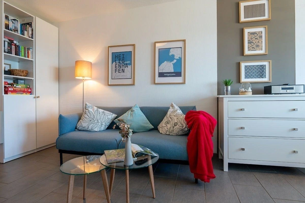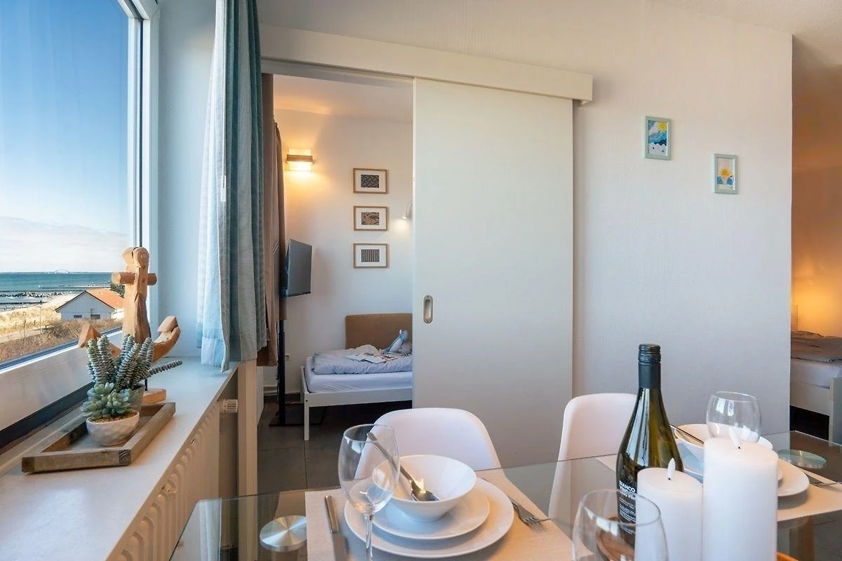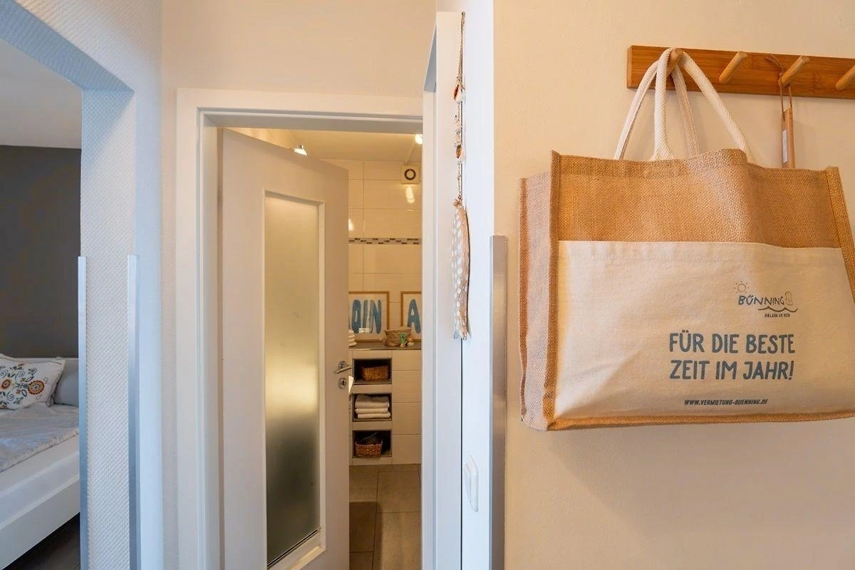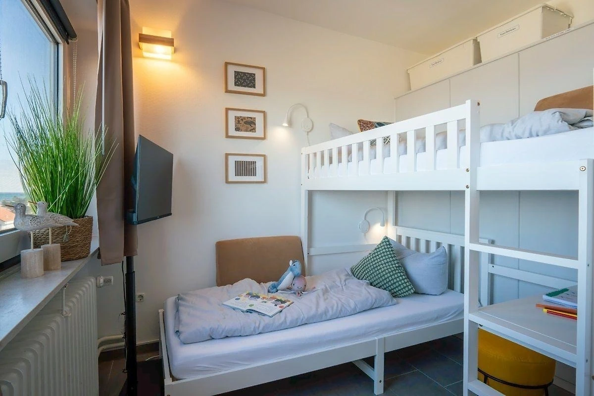 Urlauben Sie auf grosszügigen 41 m² (3. Etage) im "Strandhuus" auf dem Steinwarder - nur wenige Meter vom Badestrand entfernt. Die zuletzt 2021 modernisierte Ferienwohnung verfügt über einen grossen Wohnschlafbereich mit einer gemütlichen Sofaecke und Flatscreen-TV. Im angrenzenden Essbereich finden bequem vier Personen Platz zum Schlemmen. Der offene Küchenbereich ist, für den Urlaubsbedarf, voll ausgestattet. Eine Kaffeemaschine gehört ebenso dazu, wie ein Wasserkocher und ein Toaster. Geschirr und Besteck sind ausreichend vorhanden. Der Schlafbereich ist mit einem komfortablen Doppelbett eingerichtet. Das separate Kinderzimmer verfügt über ein Kojenbett. Das Badezimmer wurde ebenfalls modernisiert und ist mit eine Dusche mit Glastrennwand ausgestattet.