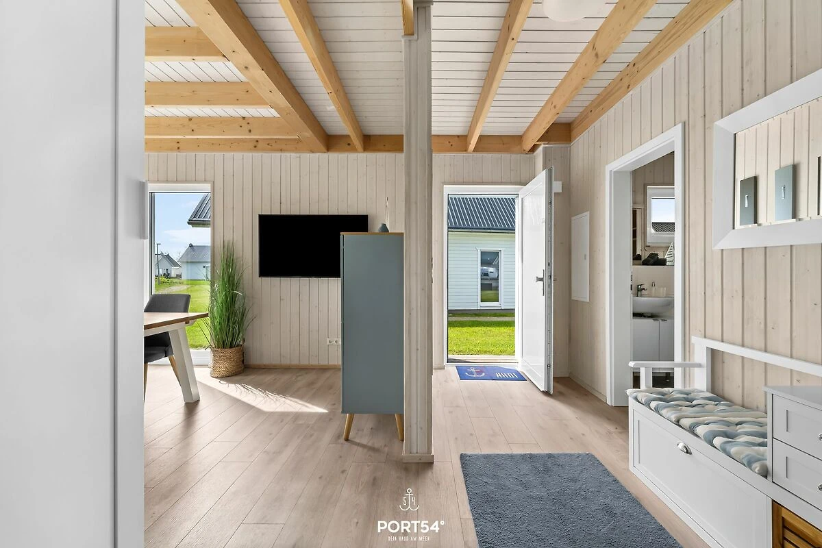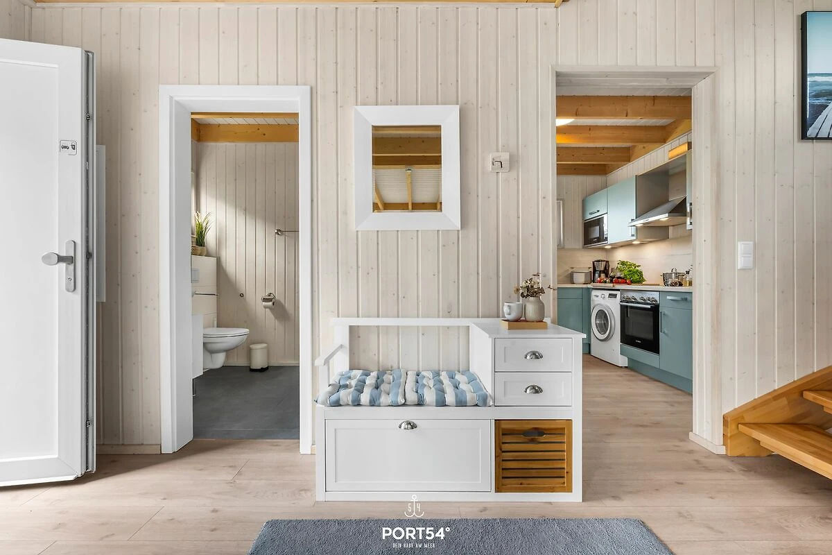 Willkommen im "Hamburger Buttje" in Olpenitz! Das Haus verfügt über einen offenen Wohn- und Essbereich, eine Küche, zwei Schlafzimmer und zwei Bäder. Nach langen Strandspaziergängen können Sie auf dem gemütlichen Sofa vor dem Kamin entspannen und Ihre Lieblingsserie auf dem Flachbild-TV schauen. Das Sofa kann zu einer Schlafcouch (140x200cm) ausgezogen werden und bietet Ihnen eine Ausweichmöglichkeit. Für die Kleinen steht ein Kinderhochstuhl bereit. Die Küche bietet alles, was Sie für einen geselligen Kochabend mit der Familie benötigen. Im ersten Obergeschoss befinden sich die zwei Schlafzimmer: Das eine ist mit einem Doppelbett (180x200cm), einem Kleiderschrank und einer Kommode ausgestattet, das andere verfügt über zwei Einzelbetten (je 100x200cm), ebenfalls mit Kleiderschrank und Kommode. Für erholsame Nächte sind beide Schlafzimmer mit Verdunkelungsmöglichkeiten ausgestattet. Ein Badezimmer befindet sich im Erdgeschoss und ist mit einer ebenerdigen Dusche, einem Handtuchtrockner und dem Highlight: einer Infrarot-Sauna ausgestattet. Hier können Sie sich an kalten Tagen aufwärmen und entspannen! Das andere Badezimmer im ersten Obergeschoss bietet eine Duschwanne, ebenfalls einen Handtuchtrockner sowie einen Föhn. An sonnigen Tagen können Sie es sich auf der möblierten Terrasse gemütlich machen und an lauen Sommerabenden mit der Familie den Tag ausklingen lassen. Ihre Fellnasen können Sie gerne mitbringen! Für Ihren PKW ist ein Stellplatz vor dem Haus zur Verfügung.