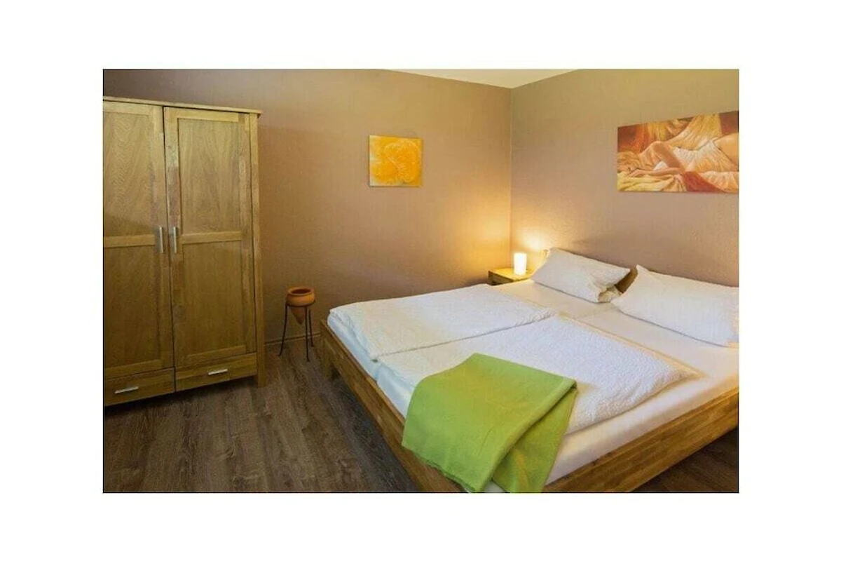 Das Schlafzimmer ist ebenfalls sehr behaglich eingerichtet. Ein großes Doppelbett wartet darauf, dass Sie es sich darin gemütlich machen.