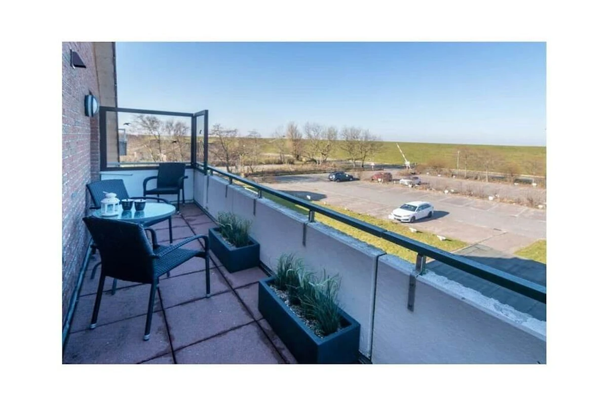 Dieser Ort ist ein totaler Vibe-Check! Super entspannte Atmosphäre und nur 2 Minuten zu Fuß zum Norddeich Strand, Der Balkonblick ist besonders schön, vor allem mit der Meeresbrise, Die Küche hat alles, was man braucht, um ein Festmahl zuzubereiten, Definitiv empfehlenswert für einen gemütlichen Kurzurlaub!
