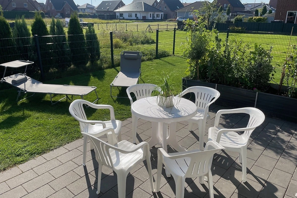 Terrasse: 2 Gartenliegen, welche als Zustellliege für eine 6- und 7-te Person genutzt werden kann (mit vermindertem Schlafkomfort allerdings).