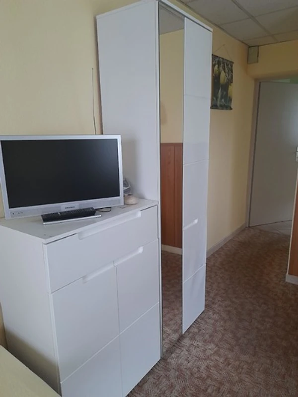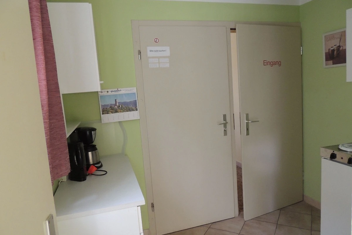 Zur Unterhaltung stehen Ihnen ein moderner TV sowie ein Radio zur Verfügung. Darüber hinaus ist das Zimmer mit kostenfreiem WLAN ausgestattet, damit Sie jederzeit online bleiben und Ihre digitalen Geräte nutzen können. Die kleine Küche ist mit den erforderlichen Utensilien gut ausgestattet. Der Sanitärbereich ist mit Dusche/WC ausgestattet. Das Zimmer/die Fewo befindet sich im Erdgeschoss. Es steht ebenso ein persönlicher Terrassenplatz auf dem Hof zur Verfügung. Der Parkplatz befindet sich im Grundstück.