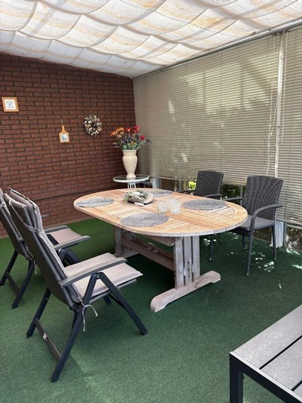 Es steht Ihnen ein grosser umzäunter Garten mit Grillmöglichkeit und Gartenmöbeln sowie eine überdachte Terrasse zur Verfügung. Ihre Fahrräder können Sie in der Garage unterstellen, ebenso Ihre E-Bikes aufladen. Freies Parken auf dem Grundstück.