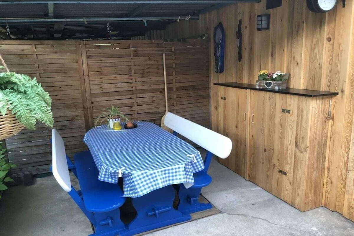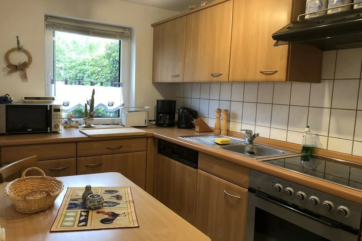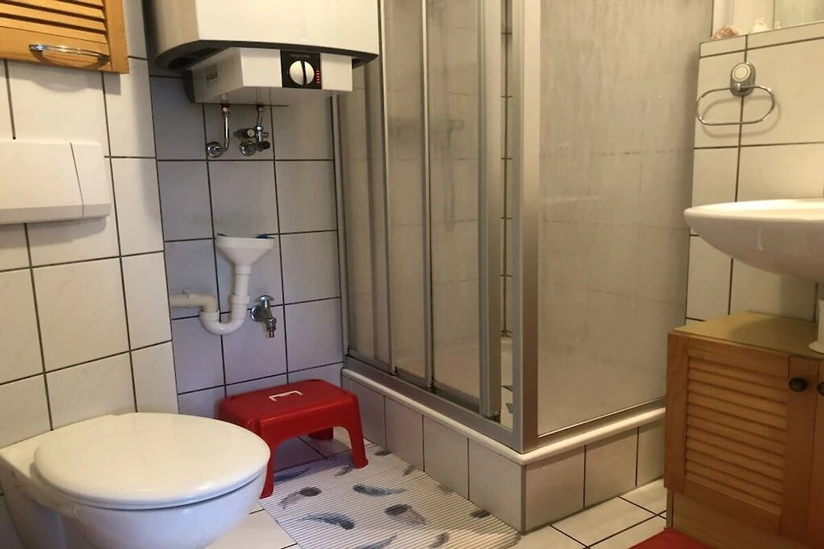 Die Ferienwohnung bietet ein Wohnzimmer, ein kleines Schlafzimmer, eine Küche und ein WC nebst Dusche. Für laue Sommerabende steht eine überdachte Sitzfläche mit Gartenmöbeln bereit. Ein Grill kann auf Wunsch ebenfalls beigestellt werden.