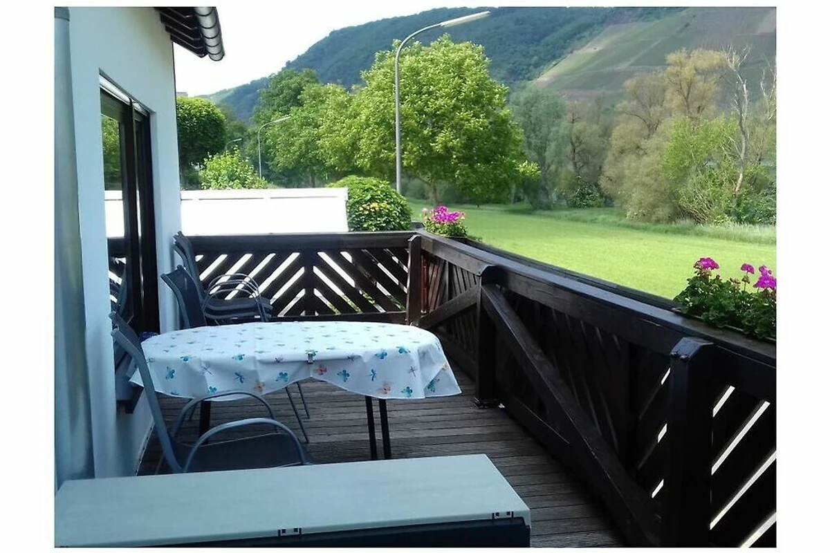 Die Ferienwohnung (ca. 75 qm) verfügt über ein Doppel- und ein 3-Bettzimmer, geeignet für 2 -4 Personen. Großer Wohn-/Ess-/Küchenraum mit Panoramablick auf die Mosel- und Weinberge. Großer Balkon mit Sitzgruppe mit Sicht auf das große Moselvorgelände.