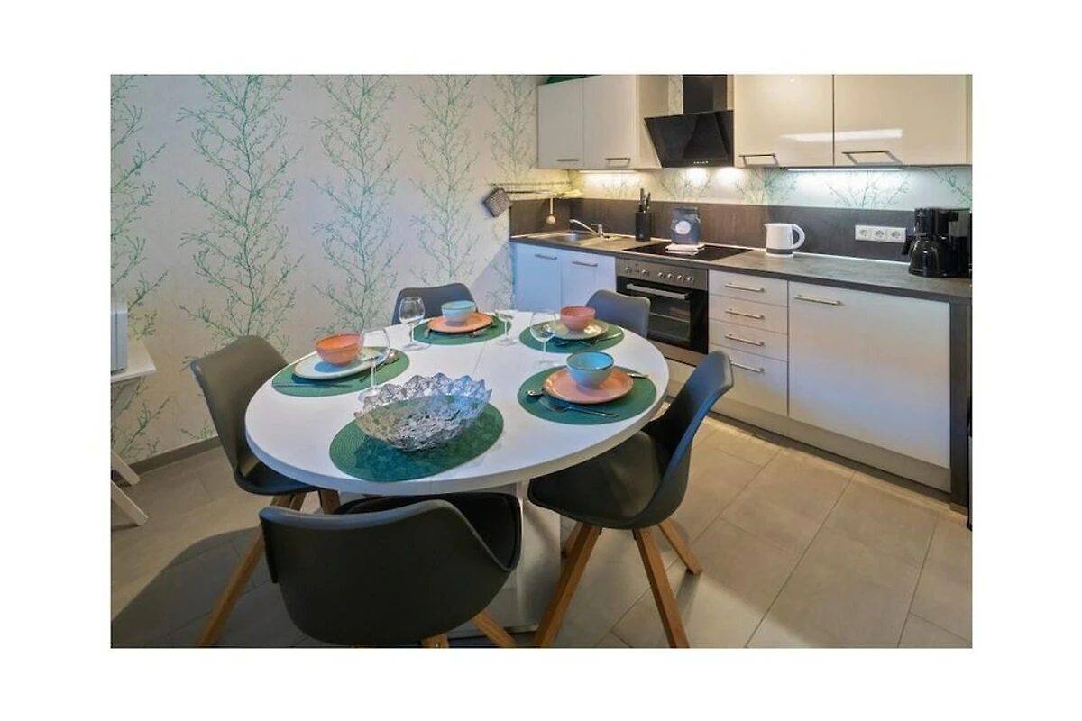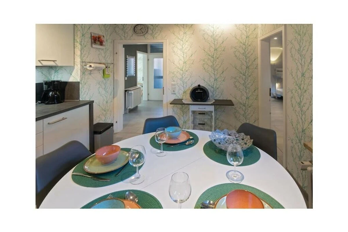 Die Wohnung war sauber und komfortabel, Wir hatten während unseres Aufenthalts keine Probleme, Es war schön, eine Garage für unsere Fahrräder zu haben, und die nahegelegenen Essensmöglichkeiten wie R&J Food machten die Mahlzeiten einfach, Insgesamt eine praktische Wahl für unseren Familienurlaub