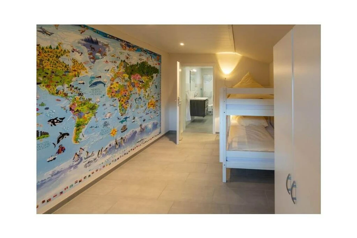 Parterre: (Eingangshalle, Wohnzimmer(Schlafcouch 1 Pers., TV, DVD-Spieler, Radio), Küche(Kochplatte, Wasserkocher, Toaster, Kaffeemaschine, Backofen, Mikrowelle, Spülmaschine, Kühlschrank, Tiefkühlschrank), Schlafzimmer(Doppelbett, Kinderbett), Schlafzimmer(Etagenbett), Badezimmer(Dusche, Toilette, Föhn))
