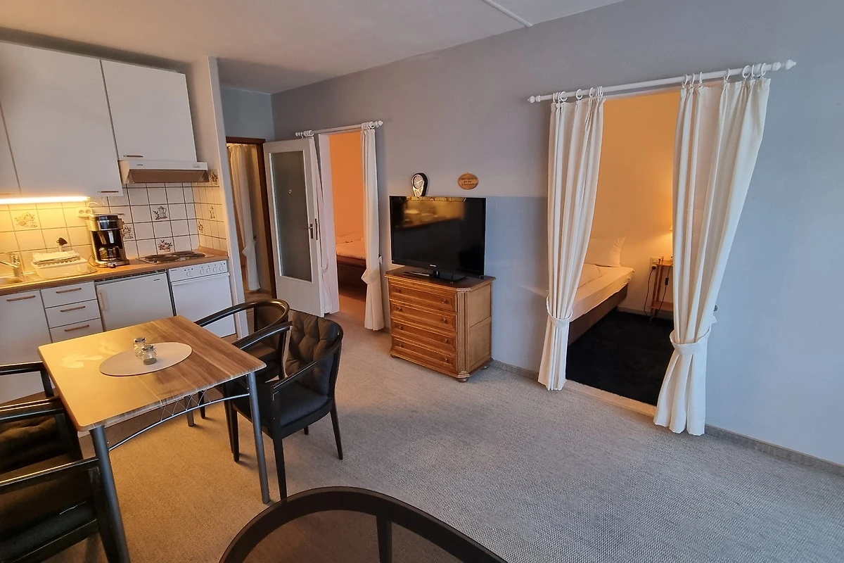 Unsere charmante Ferienwohnung (App. 109) im Erdgeschoss des Haus 7 des Ferienparks Hahnenklee ist der perfekte Rückzugsort für einen entspannten und aktiven Urlaub. Die Wohnung ist ideal für Familien und bietet aufgrund der 3 Schlafzimmer Platz für bis zu vier Personen. Ein Schlafzimmer verfügt über ein Doppelbett mit einem geräumigen Schrank. Die weiteren Schlafzimmer sind jeweils mit einem Einzelbett ausgestattet - perfekt für Kinder oder Freunde.