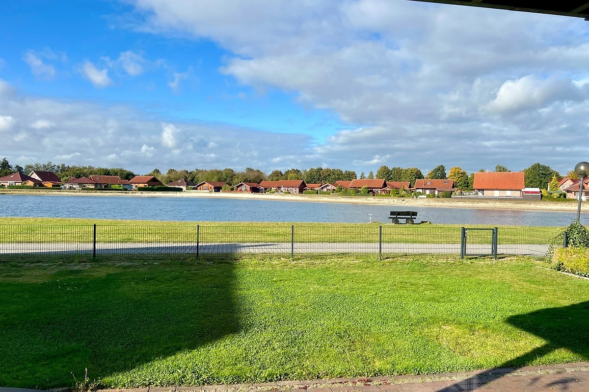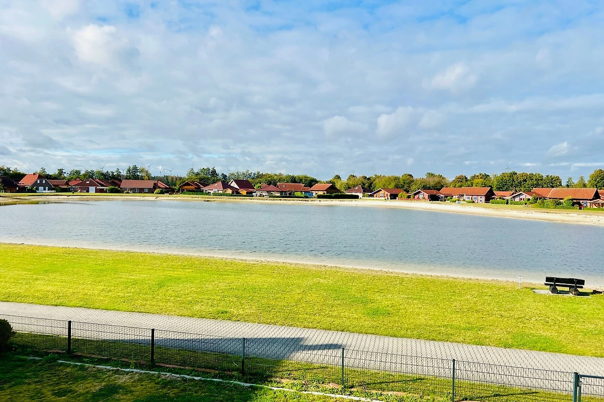 Der Badesee direkt vor dem Haus verfügt auch über einen Nichtschwimmer-Abschnitt.
