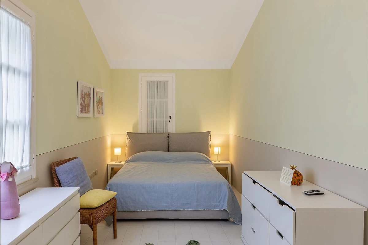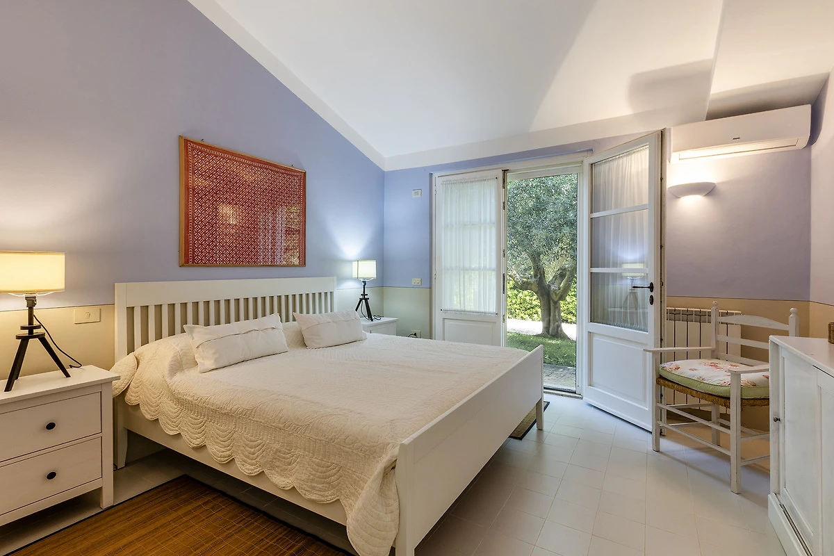 - ein Doppelschlafzimmer mit Zugang von außen, mit eigenem Badezimmer mit Dusche und begehbarem Kleiderschrank;