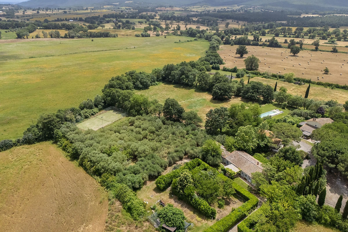 Villa Federica liegt inmitten der malerischen toskanischen Landschaft auf einem 7 Hektar großen Grundstück mit einem 2 Hektar großen Garten mit Rasenflächen, Blumenbeeten und einer Vielzahl majestätischer Bäume, darunter Seekiefern, Zypressen, Eichen und ein Olivenhain.