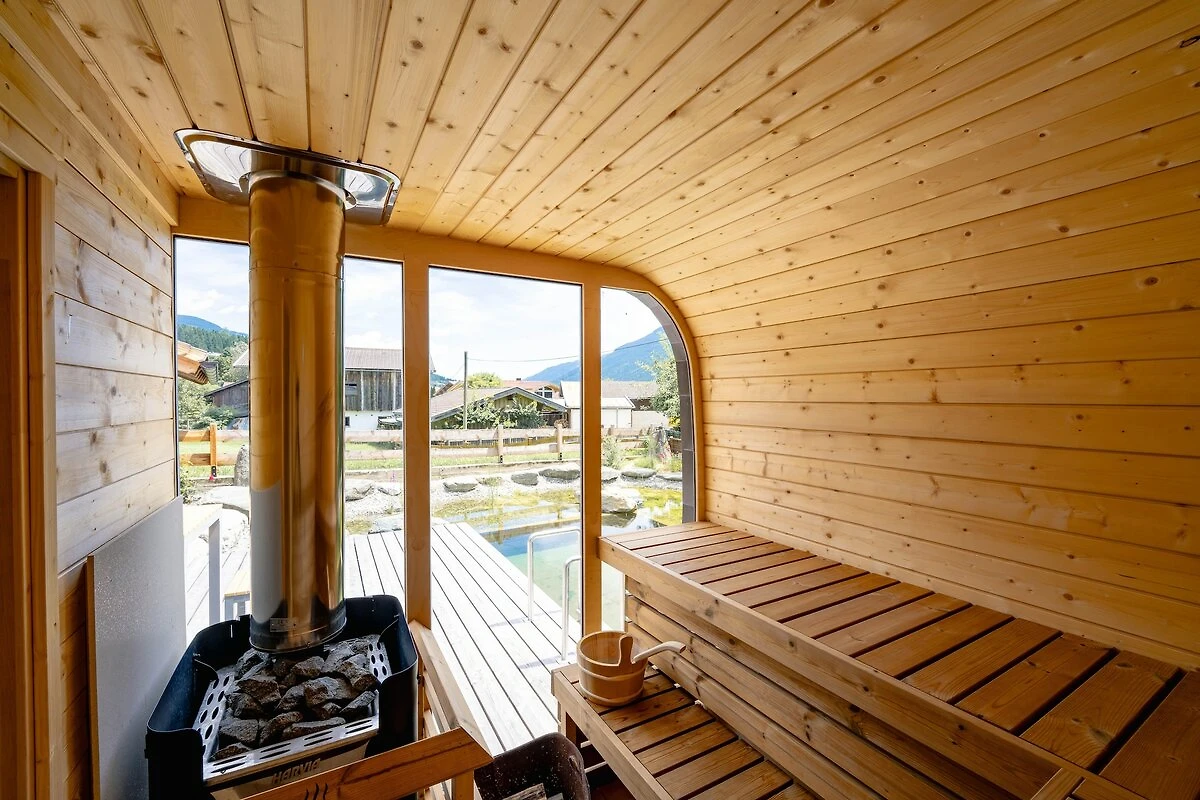 Ein schön angelegter Naturschwimmteich mit Liegeplätzen und Erholungszone, lässt sie im Sommer der Hitze entfliehen. Eine Holzblock Außensauna mit Platz für die ganze Familie oder ein großer Hot Pot welchen sie mit Holz befeuern können, was will man mehr nach einem schönen Skitag. Großzügige Terrassen und Gartenflächen sorgen für sonnige Momente im Urlaub. Der ab Sommer 2025 errichtete und in die natürliche Umgebung eingebaute Spielplatz lässt jedes Kinderherz höher schlagen.