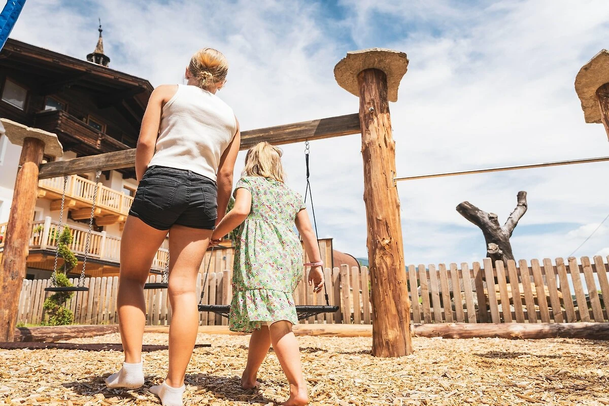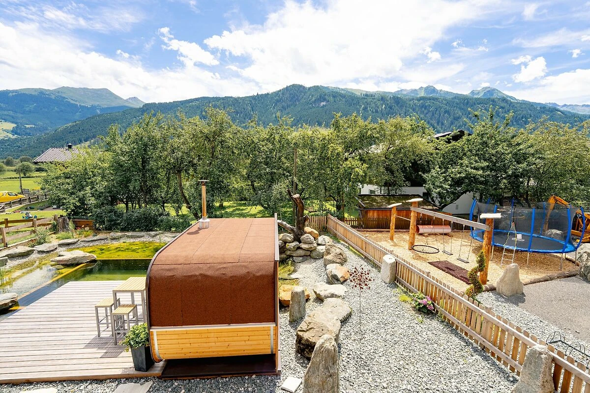 Ein schön angelegter Naturschwimmteich mit Liegeplätzen und Erholungszone, lässt sie im Sommer der Hitze entfliehen. Eine Holzblock Außensauna mit Platz für die ganze Familie oder ein großer Hot Pot welchen sie mit Holz befeuern können, was will man mehr nach einem schönen Skitag. Großzügige Terrassen und Gartenflächen sorgen für sonnige Momente im Urlaub. Der ab Sommer 2025 errichtete und in die natürliche Umgebung eingebaute Spielplatz lässt jedes Kinderherz höher schlagen.