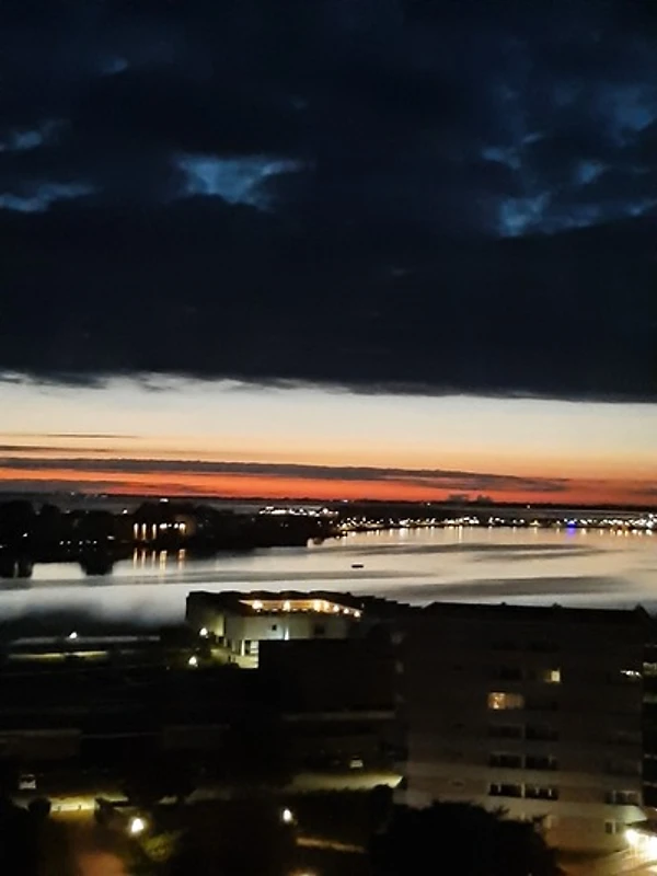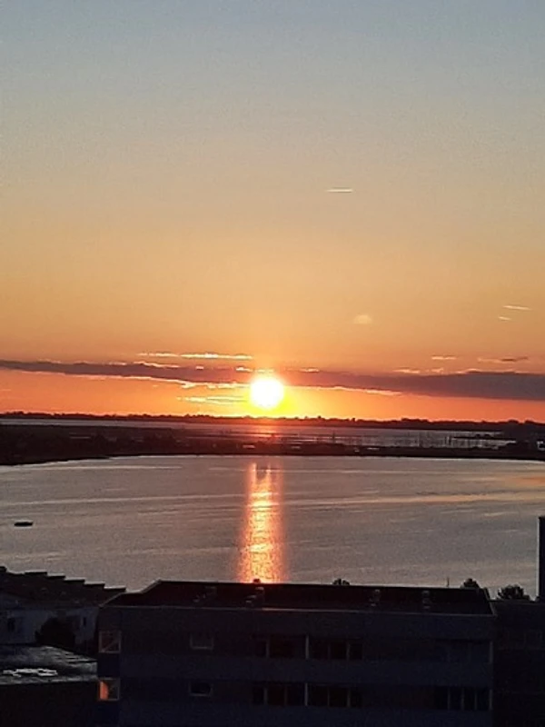Balkon: Überdacht, möbliert mit Tisch, 2 Sesseln mit Auflagen. Hier können Sie die Sonnenaufgänge geniessen und am Abend die Skyline von Heiligenhafen mit ihrem bunten Lichtermeer.