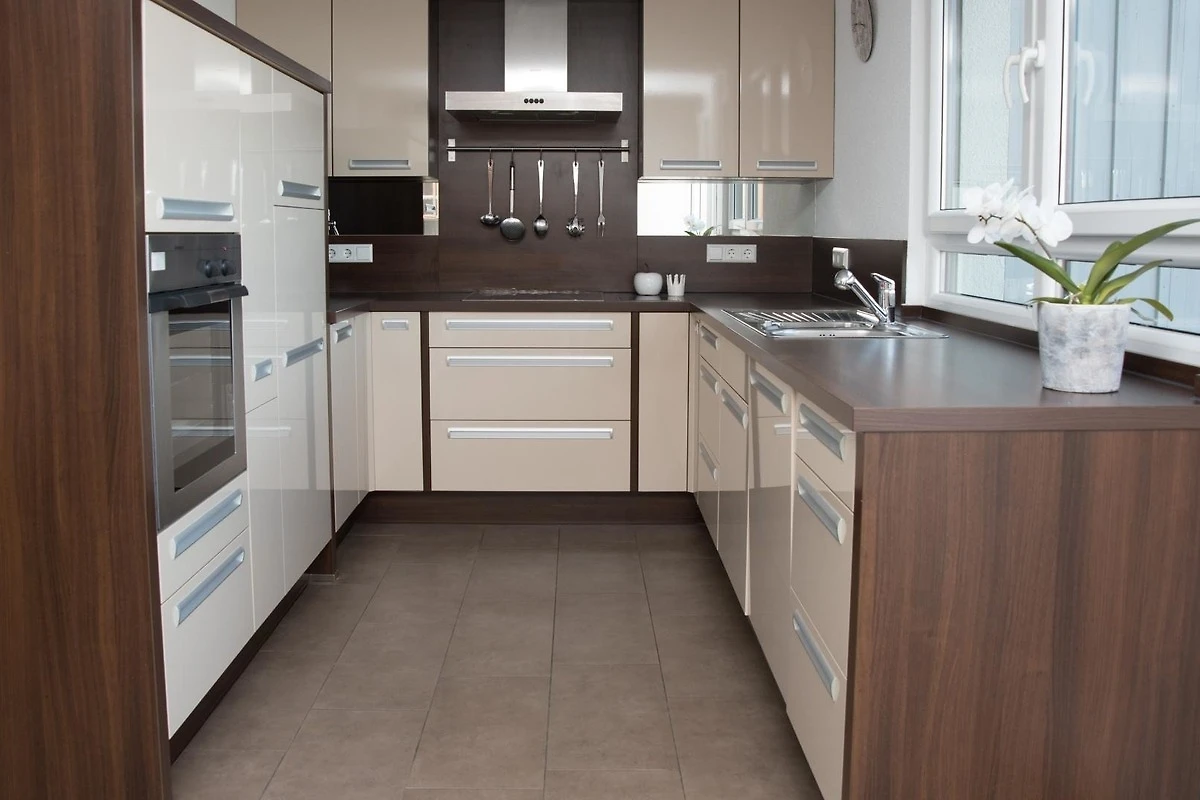 • Einbauküche mit Ceranfeld, separater Backofen, Mikrowelle, Spülmaschine, Kühlschrank + separate Gefrier-Einheit, div. Töpfe und Pfannen, Wok, Wasser- und Eierkocher, Kaffeemaschine und Toaster
